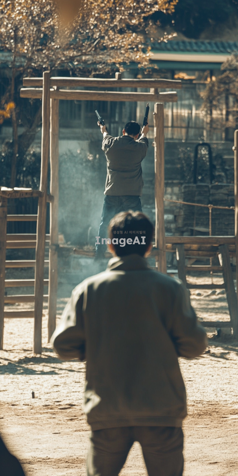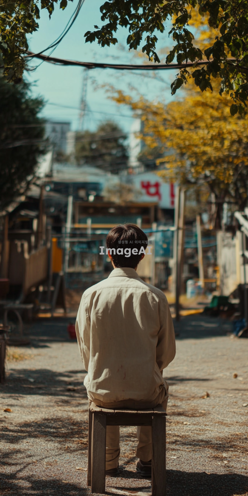 놀이터에서 살인하는 남자의 모습을 기괴하게 한국 배경으로 뒷모습이 보이게 만들어줘