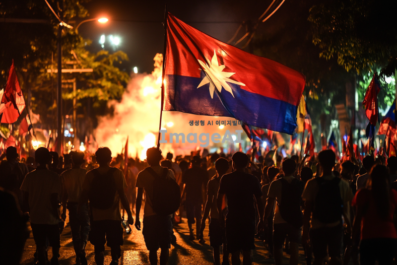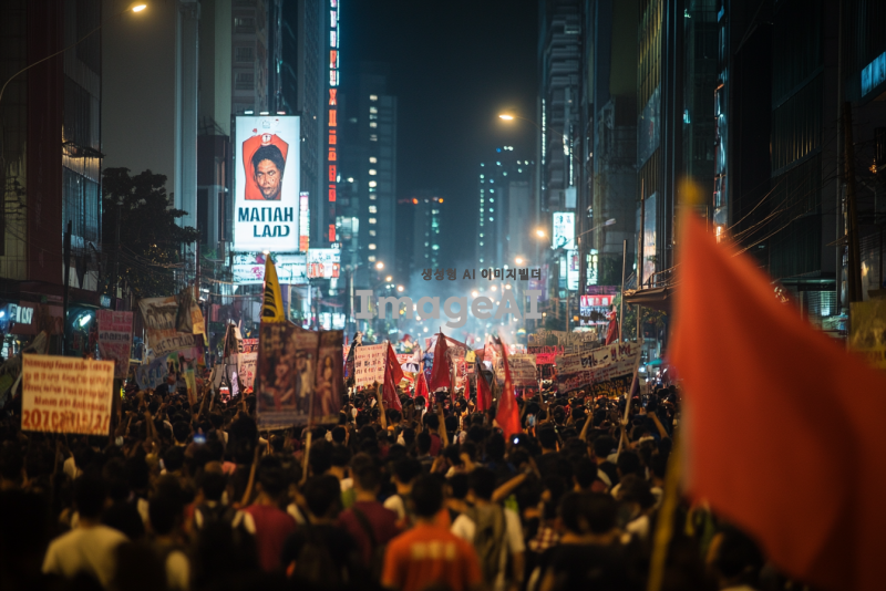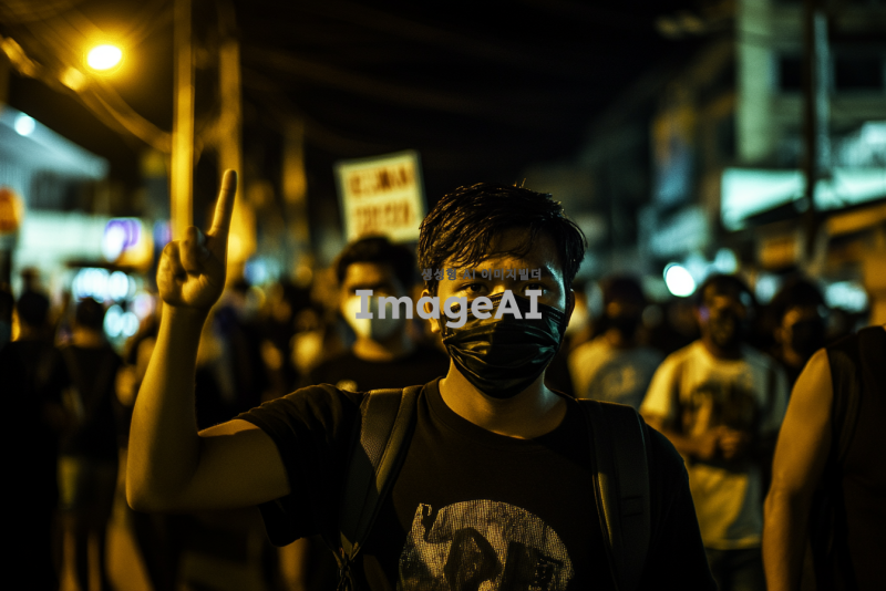 2024년 12월 3일 한밤 중 비상계엄령 선포를 반대하고 민주주의를 추구하는 모습