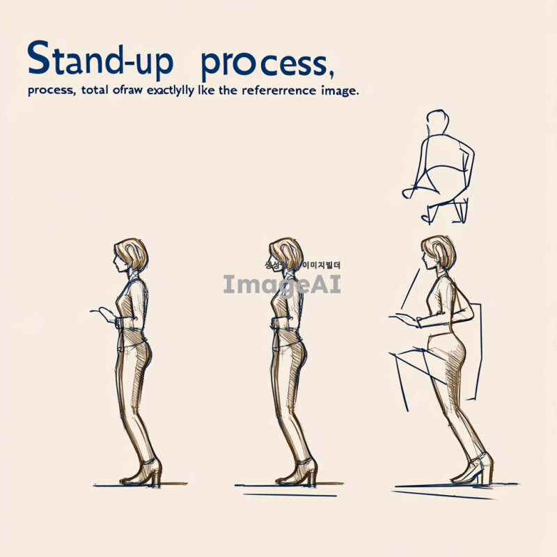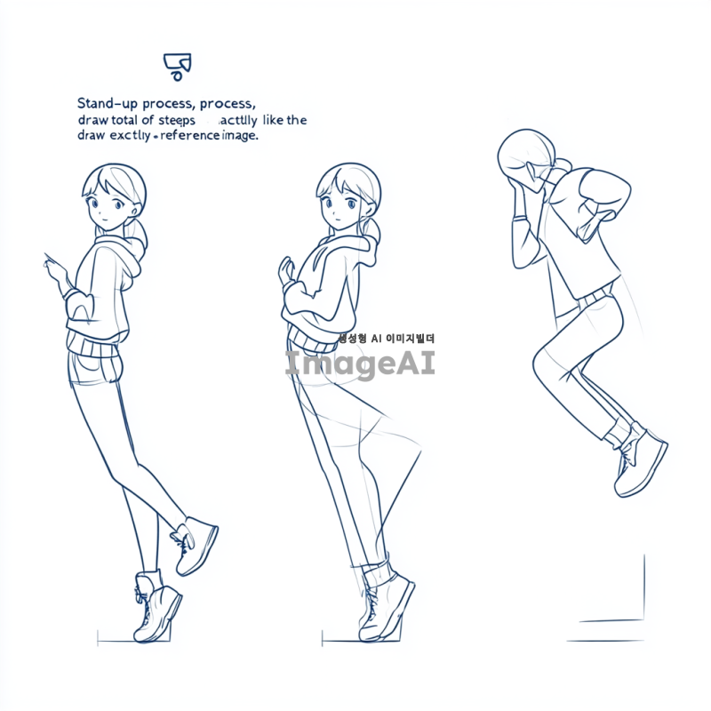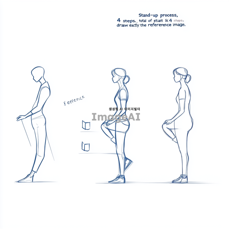 일어서기 과정, 총 4단계, 참조 이미지랑 똑같이 그려줘