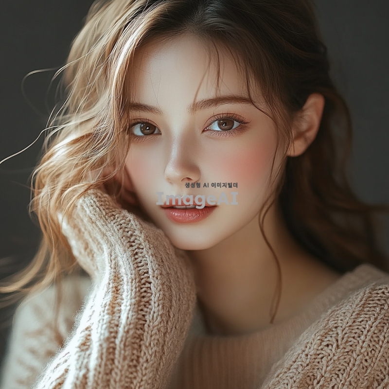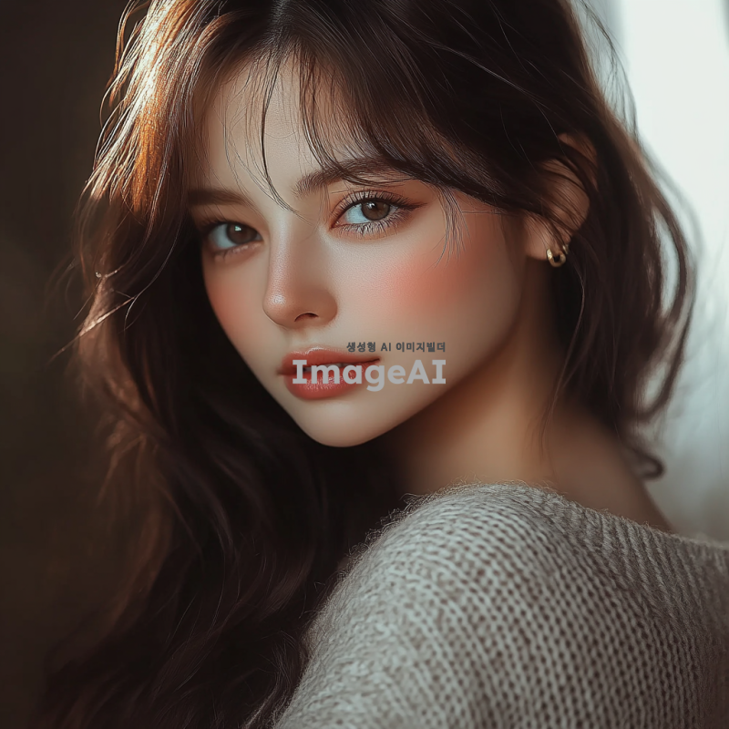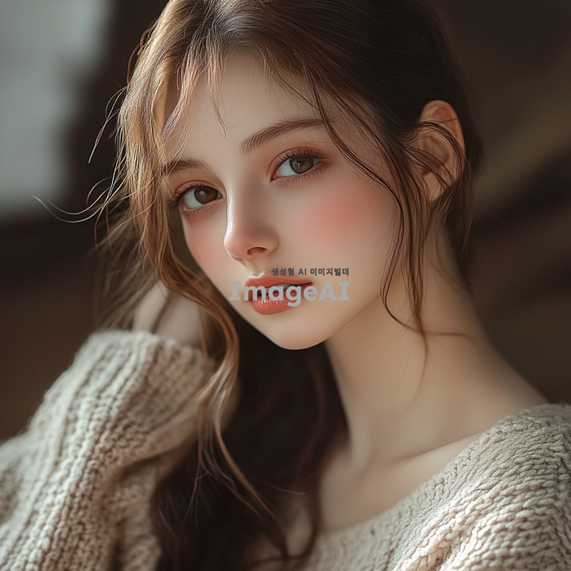 사진속의 여성이 따스한 조명속 포근한 니트를 입고 있다.