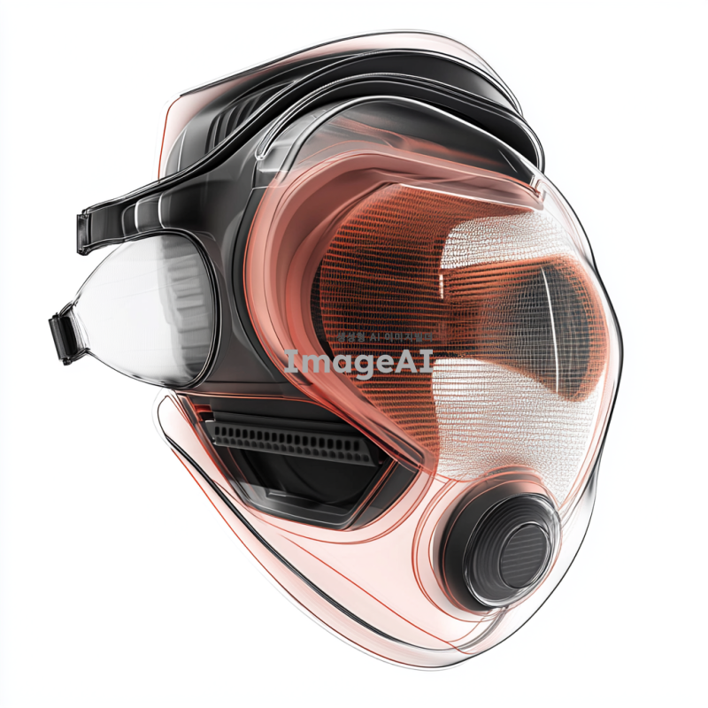 방진마스크 내부 단면도, 고해상도, 디테일 강조, 마스크의 여러 층과 필터 구조가 명확하게 보이도록, 각 층의 재질과 기능이 잘 드러나게, 현대적이고 기술적인 느낌, 과학적인 정보 그래픽 스타일, 깔끔하고 정돈된 이미지, 흰색 배경, 마스크의 측면에서 본 단면도, 필터의 다양한 층과 그 사이의 공기 흐름이 시각적으로 표현된 모습.