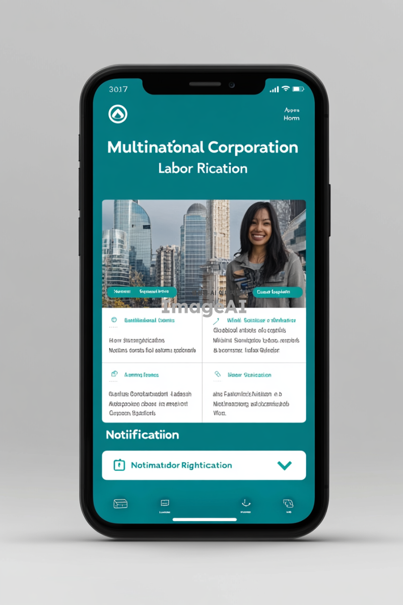 난 앱 개발자야. 최근에 앱을 만들었는데, 앱을 소개하는 발표 자리에서 너가 만들어준 가상의 앱 화면을 사용하고 싶어. 내가 만든 앱은 '다국적기업 노동 인권을 알리는 앱'이야. 크게 두가지, 그중 첫번째는 다국적 기업의 노동 인권에 대한 내용을 시민들에게 알리는 카드뉴스를 보여주는 기능과, 두번째는 기업들이 인증마크를 제품에 부착했는지 안 했는지를 알려주는 로드맵을 보여주는 기능이야. 따라서 너가 만들어야 하는 이미지는 내가 만든 앱에 이 두 기능이 있다는 걸 보여줘야 해. 앱 실행했을 때 화면을 만들어줘.