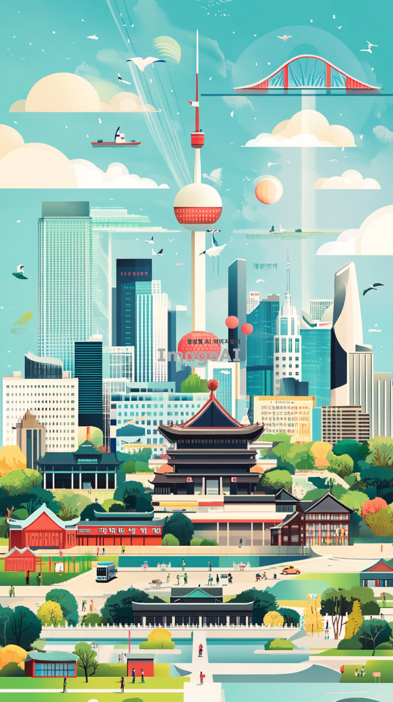 대한민국 인천을 관광하는 외국인을 위해 영어로된 포스터를 만드는데 포스터안에 사람은 없었으면 좋겠고 인천의 랜드마크들이 들어갔으면 좋겠어 그리고 다양한 문구들이 들어가면 좋을것같아