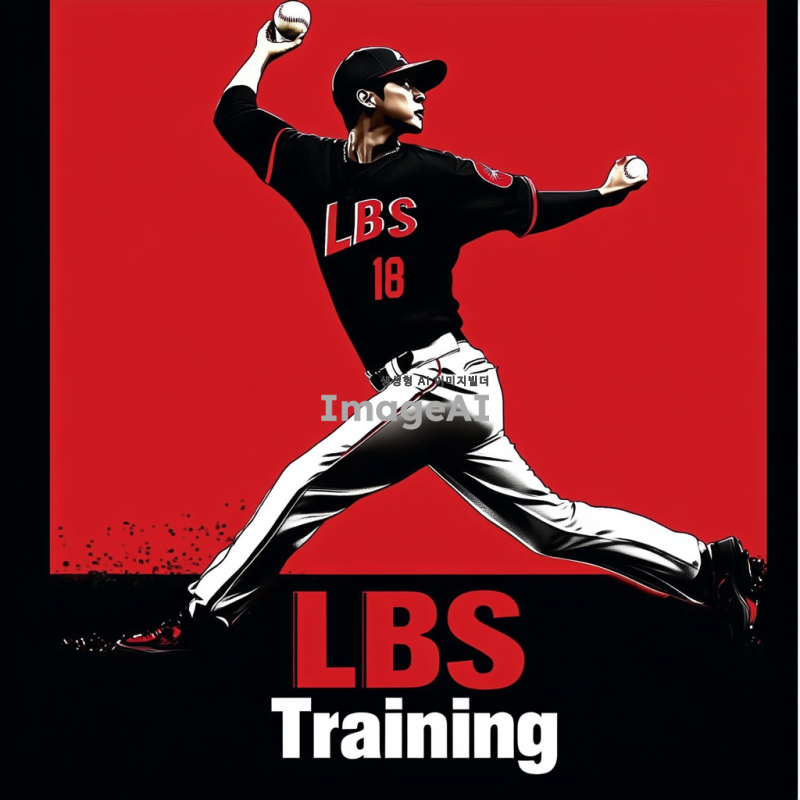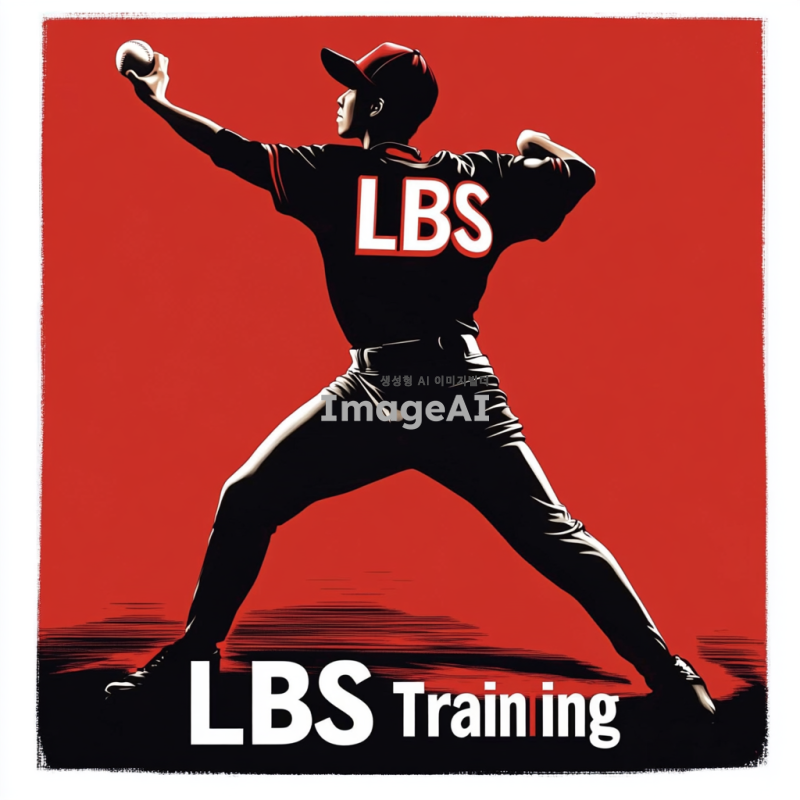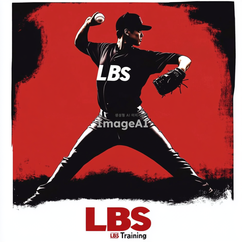 한국인 투수가 투구하는 역동적인 실루엣을 검정색으로 표현,투수의 유니폼에는 작게 LBS라고 적혀져있음. 하단에 "LBS Training"이라는 글자를 빨간색과 흰색의 조화로 크게 배치, 글자는 직관적이고 선명한 스타일로 디자인.