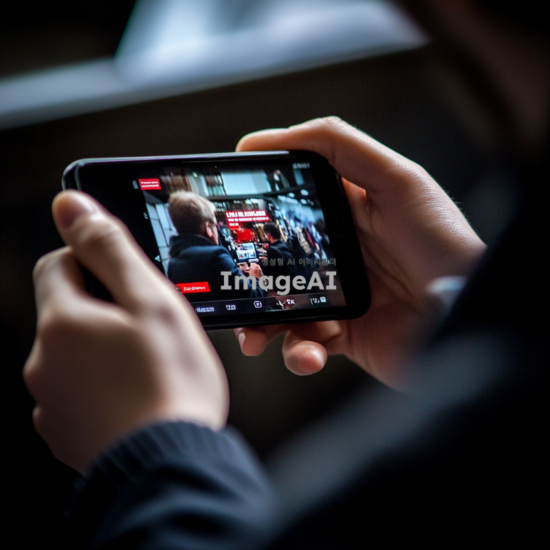 휴대폰으로 뉴스를 보는 사람