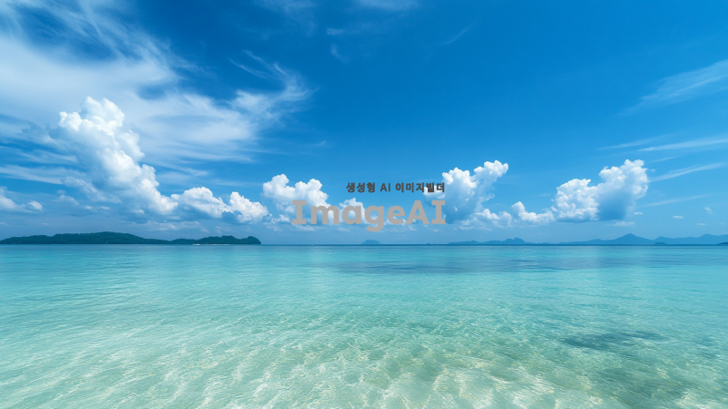 푸르고 맑은 하늘, 흰 구름이 떠다니는 모습, 평화롭고 고요한 분위기