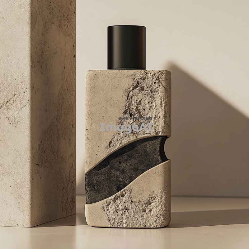 직육면체와 비슷한 바위를 모티프로 한 샴푸 용기 디자인해줘.색상은 모카크림색, 광택은 세미매트.