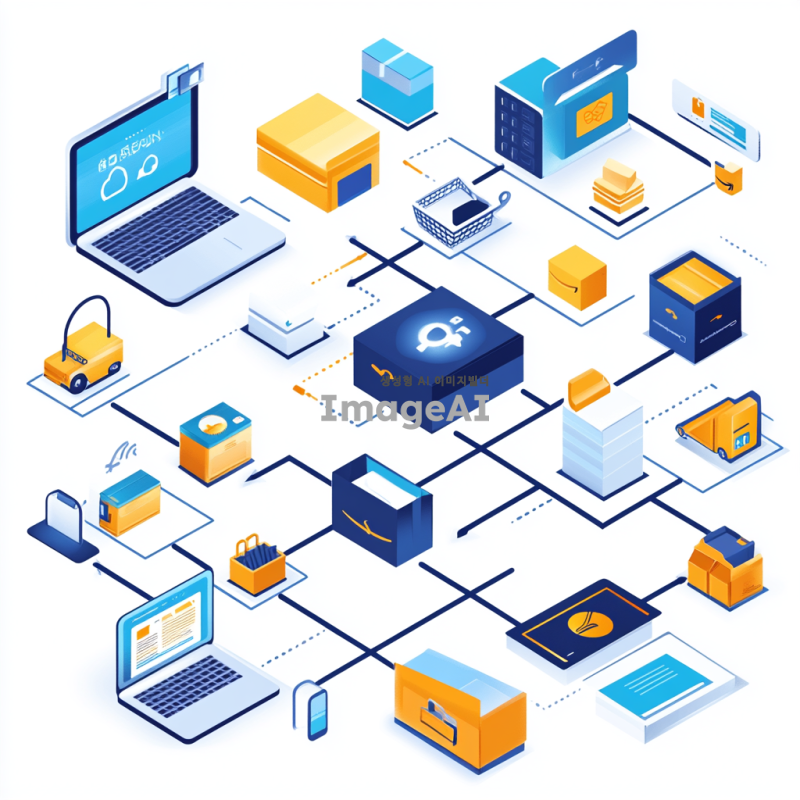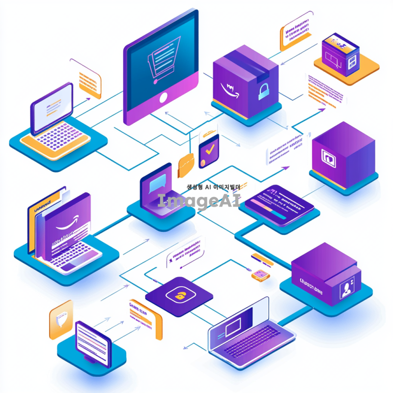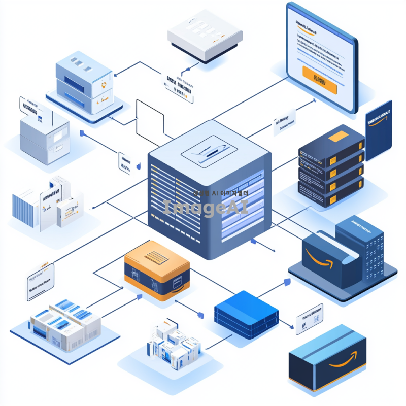 아마존 사이트의 메인 시스템 구조를 다이어그램 형식으로 표현한 이미지. 사용자 인터페이스(UI/UX)는 웹과 앱으로 나뉘어 있으며, 검색 엔진은 제품 검색과 추천 기능을 포함하고 있다. 상품 카탈로그는 제품 정보와 관리 시스템을 나타내며, 추천 시스템은 개인화된 상품 추천을 제공한다. 주문 및 결제 시스템은 결제 처리와 주문 관리 기능을 포함하고, 물류 시스템은 배송 및 재고 관리를 담당한다. 고객 서비스는 고객 지원과 피드백 기능을 포함하고, 백엔드 시스템은 서버와 데이터베이스 처리를 나타낸다. 마지막으로 보안 시스템은 개인정보 보호와 보안을 강조한다. 이 모든 요소들이 연결되어 있는 구조를 시각적으로 표현해 주세요. 엄청 심플하게 한국어로 입체감 없는 이미지로