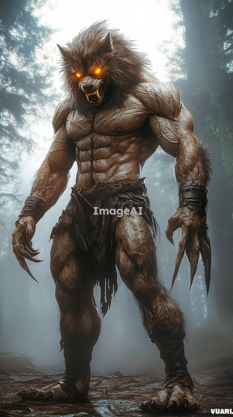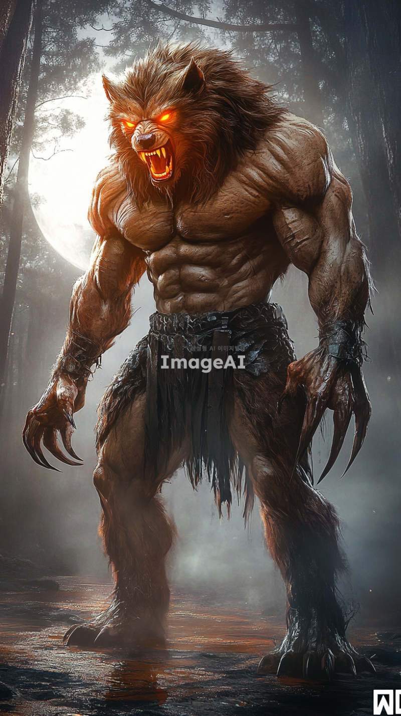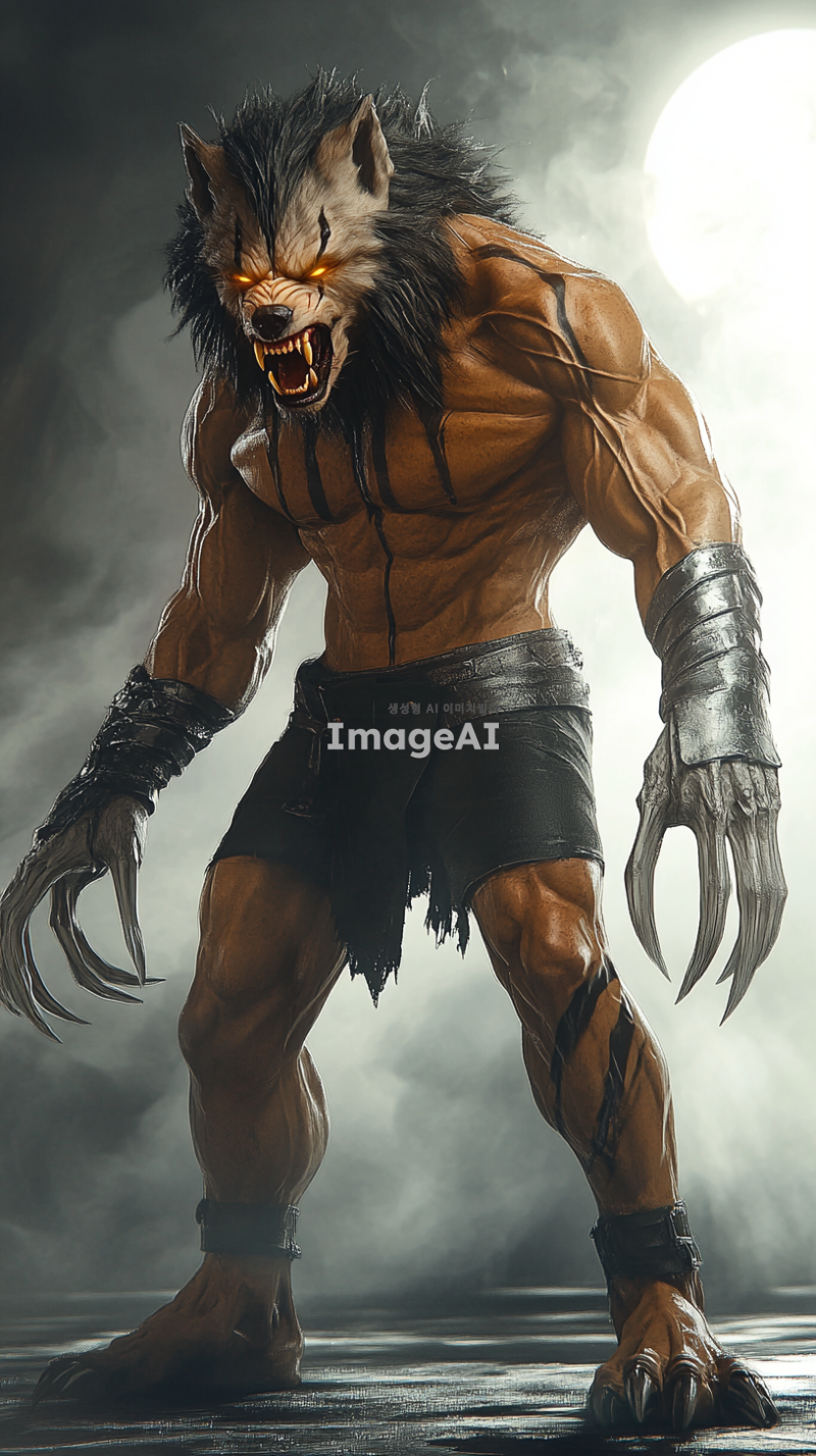 늑대에서 영감을 받은 고도로 사실적인 인간형 캐릭터로, 원초적인 공포와 야생적인 힘을 불러일으키도록 디자인되었습니다. 이 캐릭터는 키가 크고 근육질의 인간형 몸매를 가지고 있으며, 거친 짙은 회색과 검은 털로 덮여 있고, 은빛 줄무늬가 섞여 있어 늑대의 자연스러운 털을 연상시킵니다. 얼굴은 인간과 늑대의 특징이 융합되어 있으며, 넓고 각진 주둥이, 빛나는 노란색 세로형 눈동자, 그리고 송곳니가 드러난 채 위협적으로 드리운 침이 돋보입니다. 귀는 뾰족하고 예민하며, 야생적이고 포식자의 표정을 강조합니다.