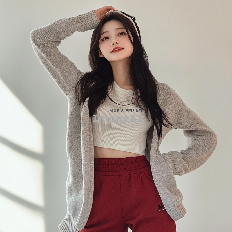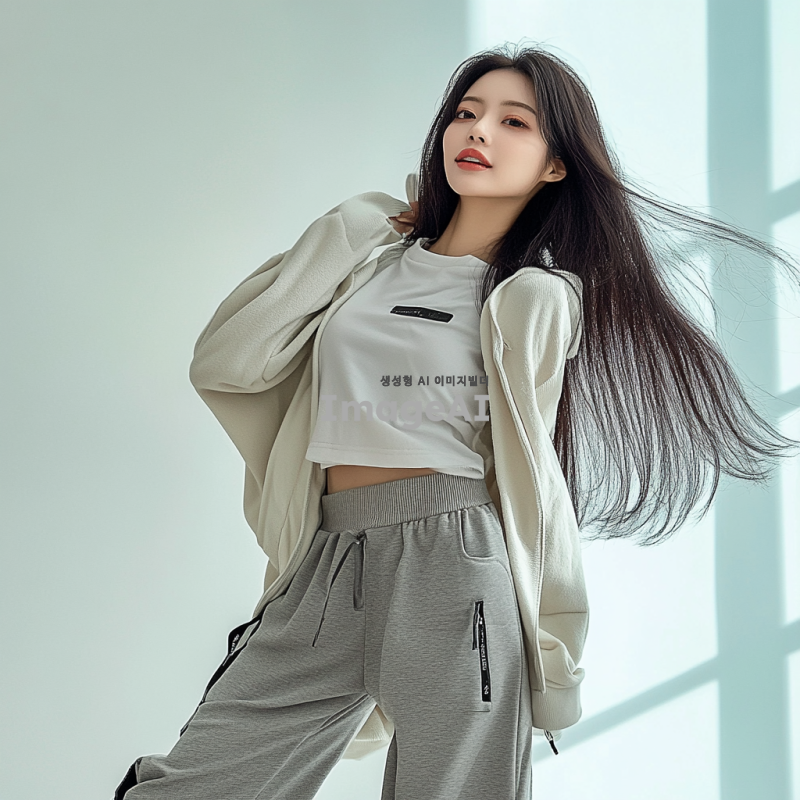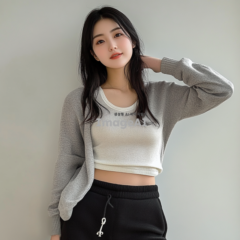 사이트에 여자모델을 사용하는데 모델포즈를 하고 이쁜 겨울 옷을 입고있는 동양인 여자를 만들어줘