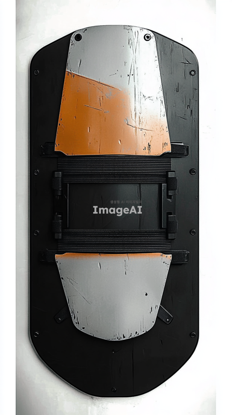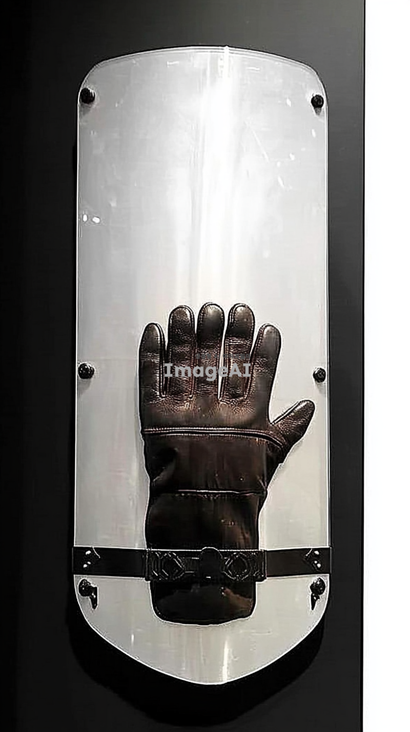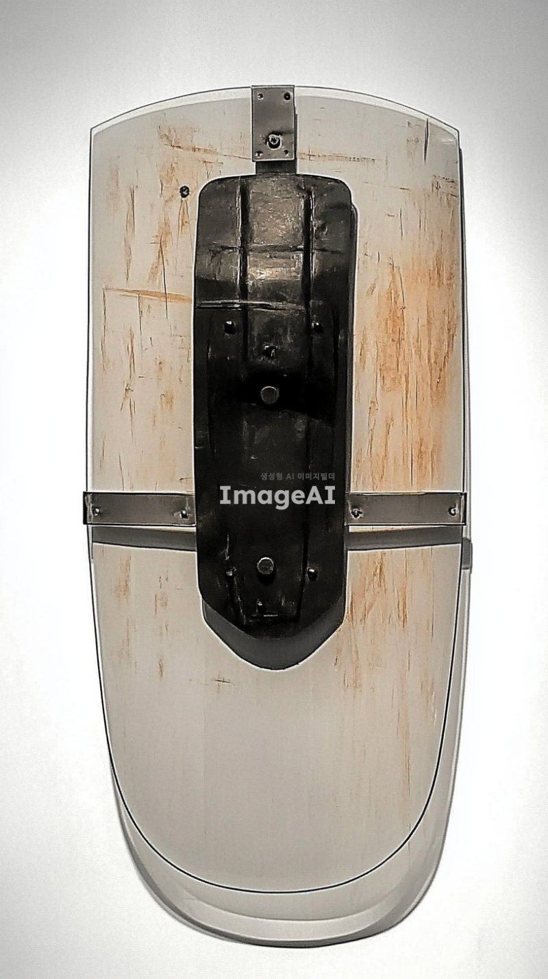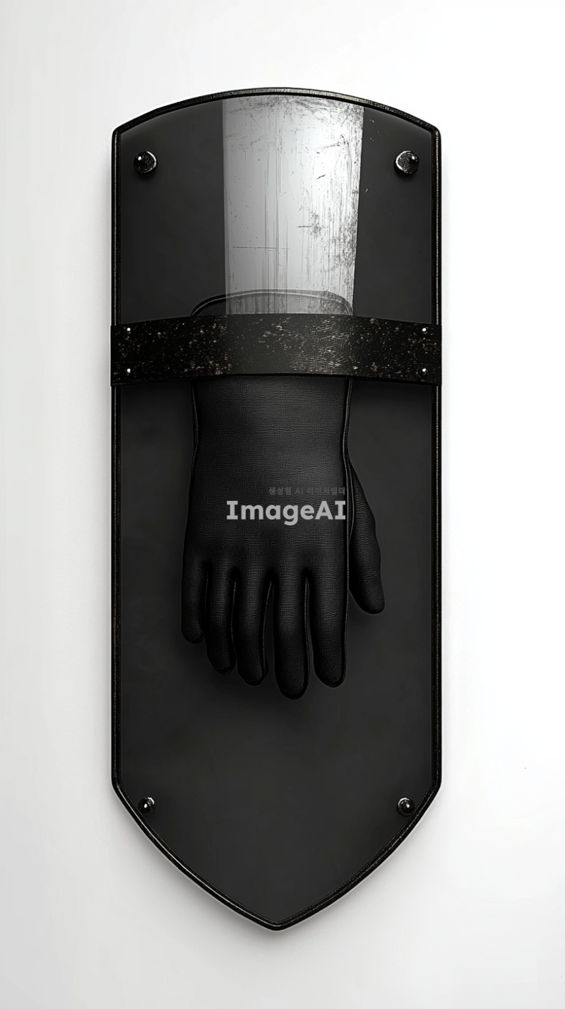 하부에 지지대가 있는 방패, 방패 중간에 절연장갑이 장착되어 있음