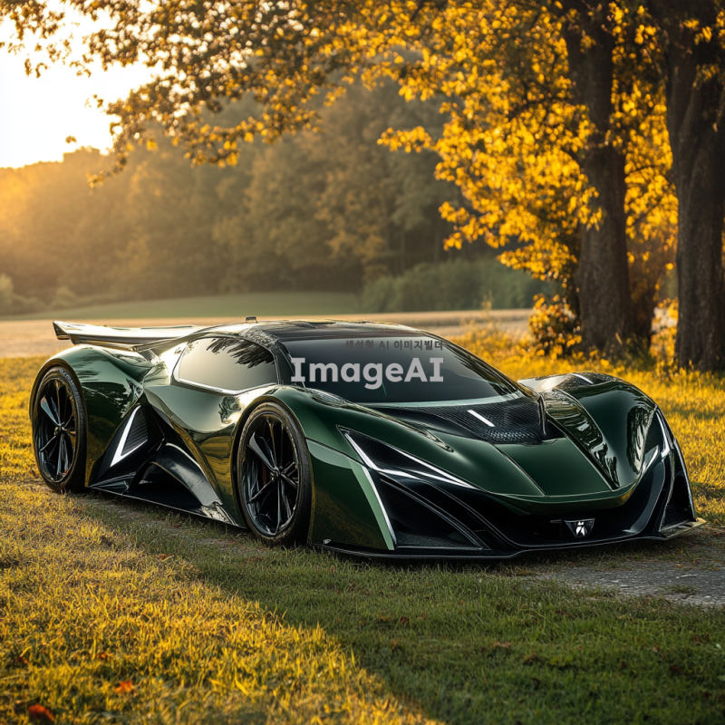 굉장히커다랗고초록색의슈퍼카그리고자율주행이어야해