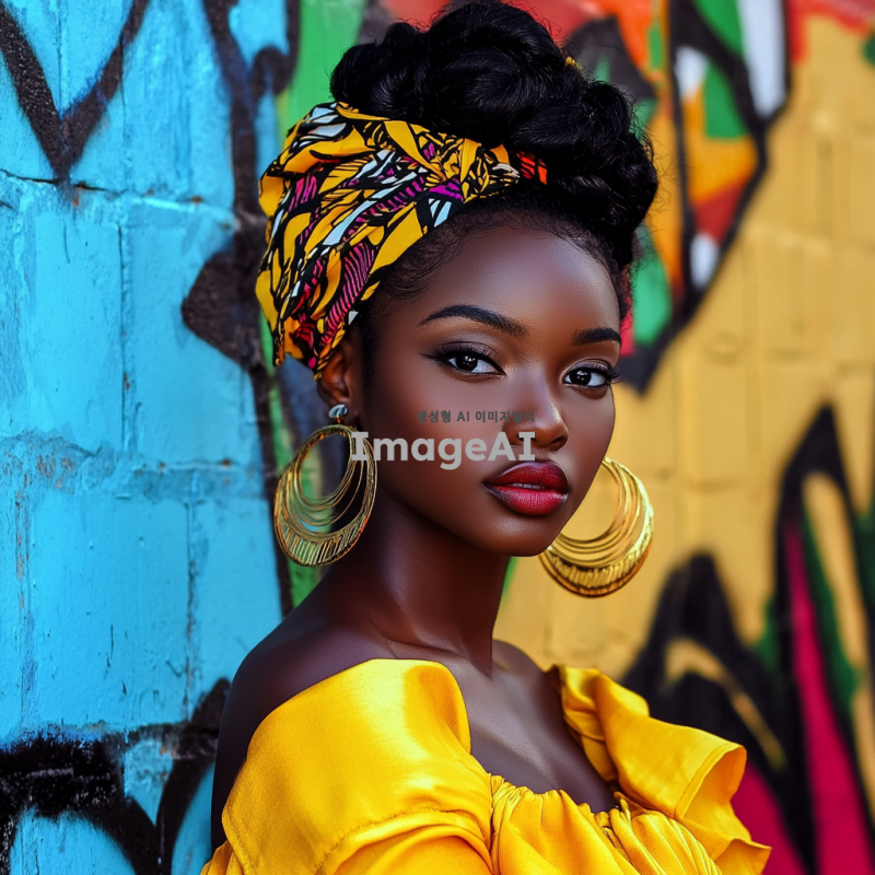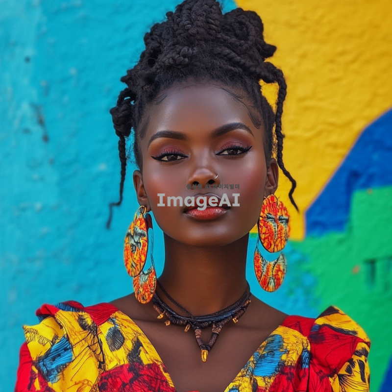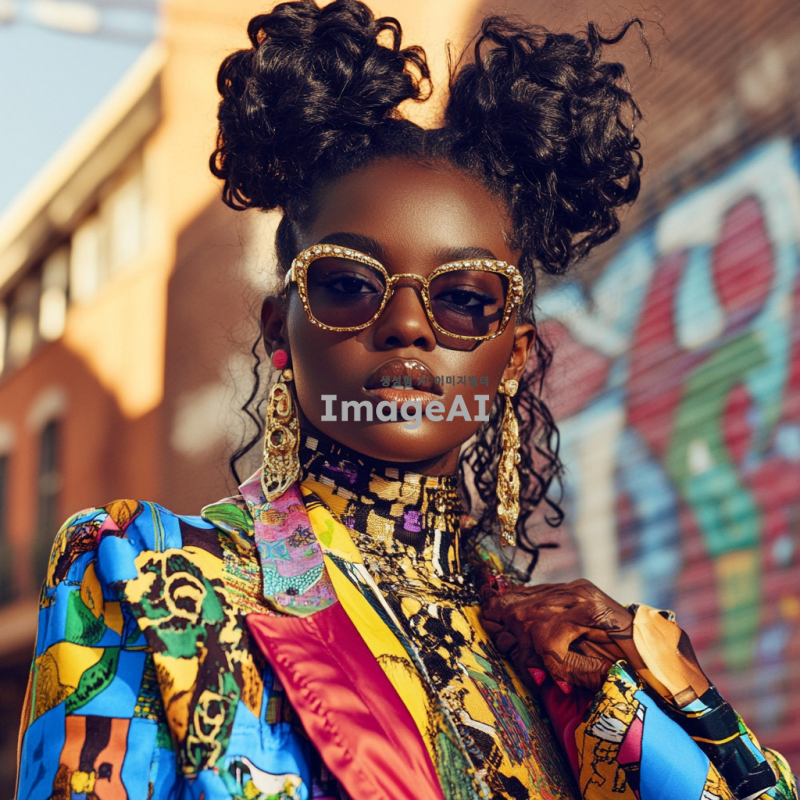 소미가 흑인으로 변신한 모습, 다양한 피부 톤과 아름다운 헤어스타일, 현대적인 패션을 입고 있는 모습, 배경은 도시의 거리, 자신감 넘치는 표정, 다양한 문화의 요소가 담긴 장면, 밝고 생동감 있는 색감
