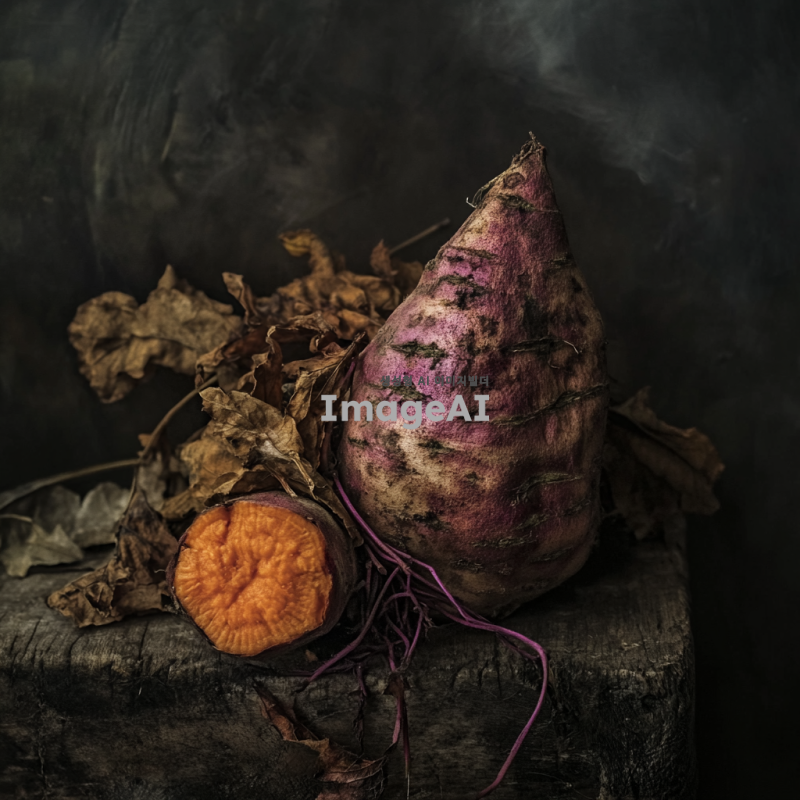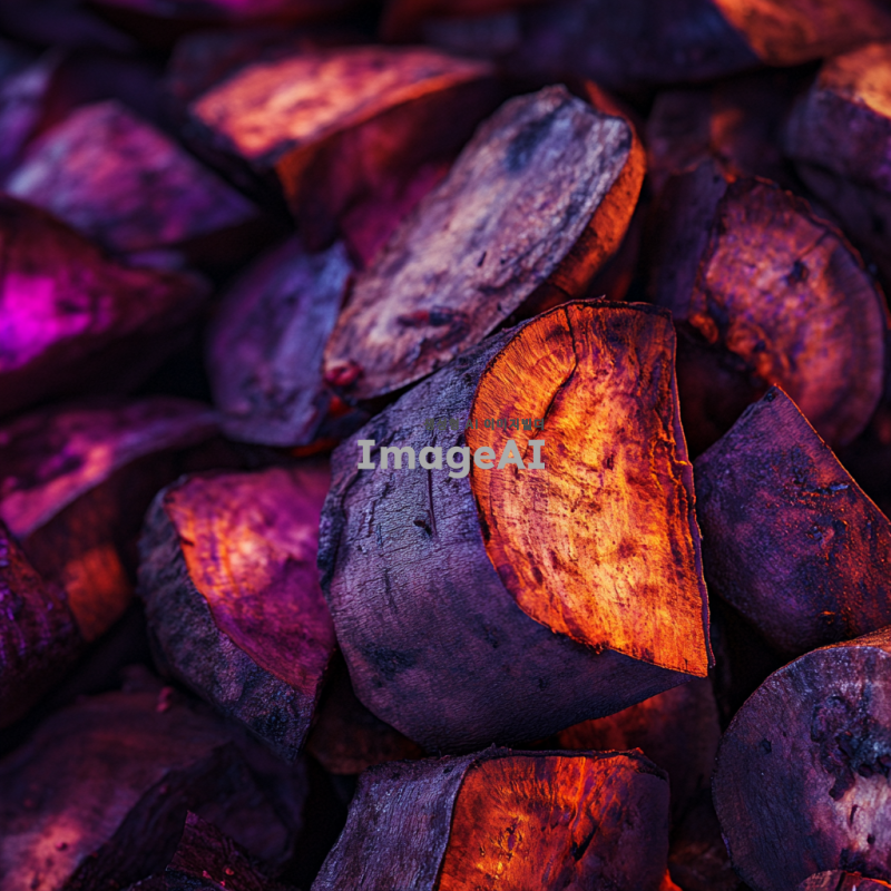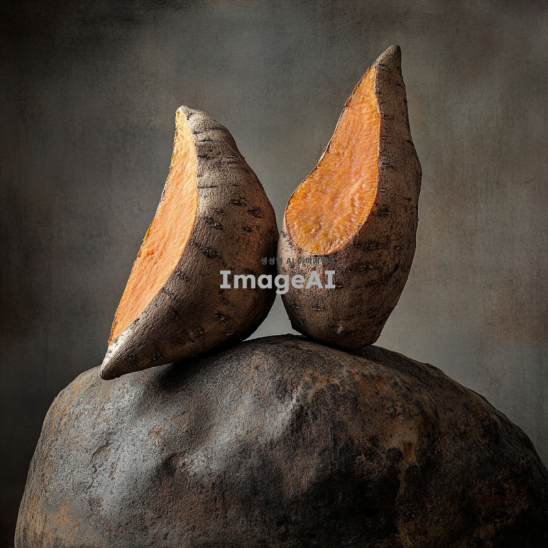 부드러운 조명 아래에서 군고구마의 질감과 색상이 돋보이도록 표현된 이미지.