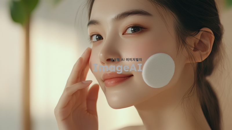 크렌징 패드로 화장을 지우는 여성