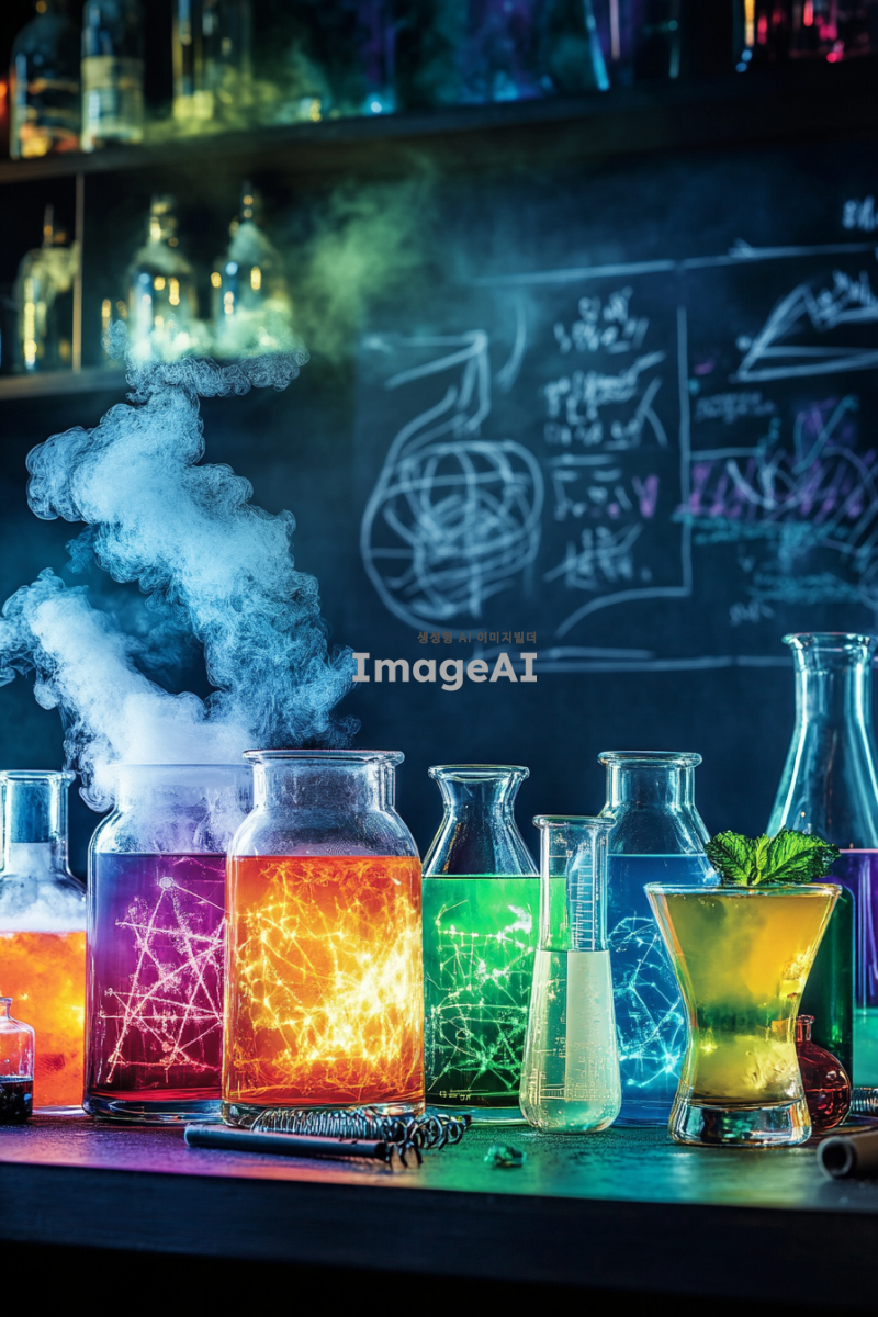 칵테일바 홍보 포스터를 만들건데. 과학실 컨셉