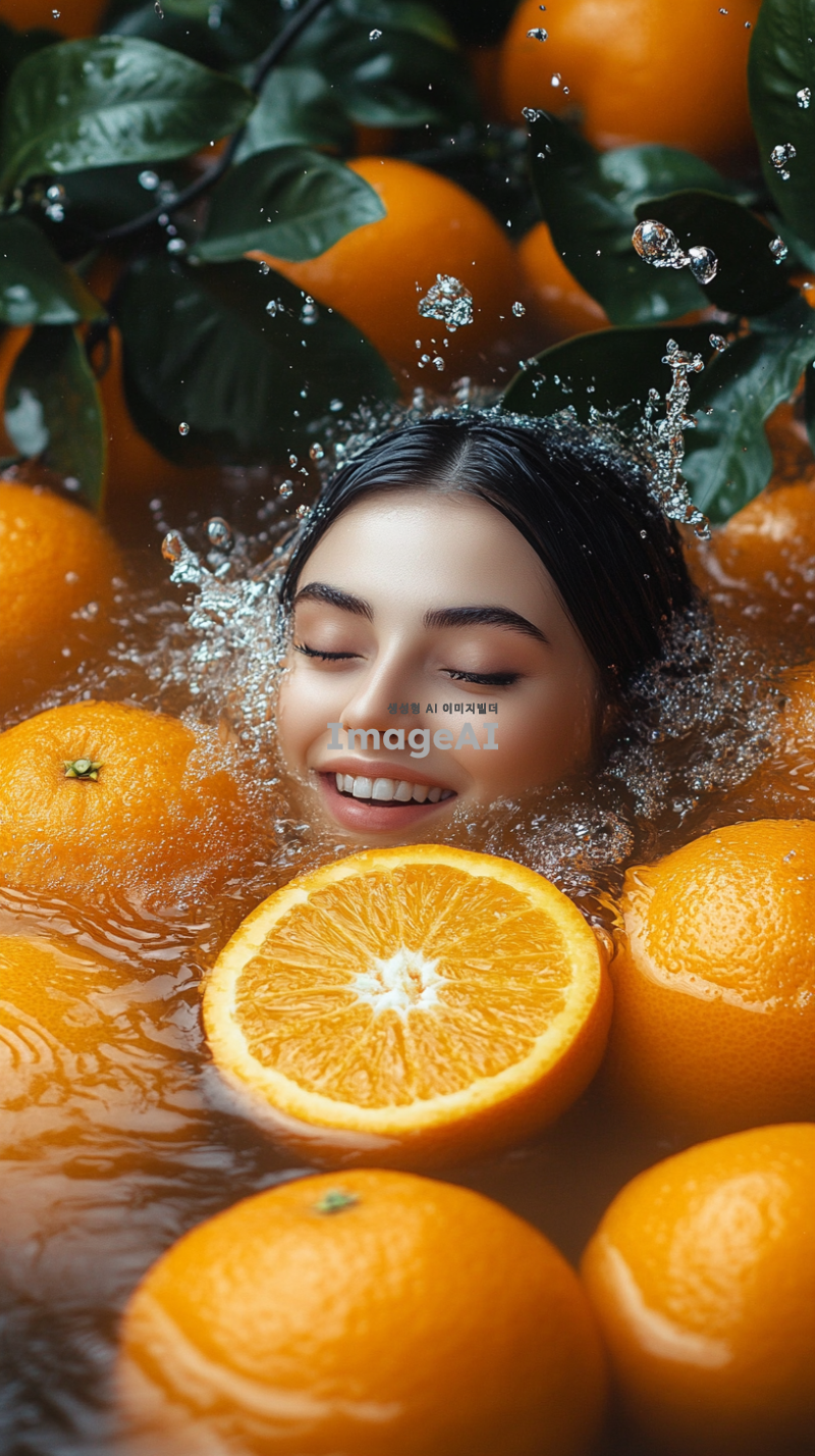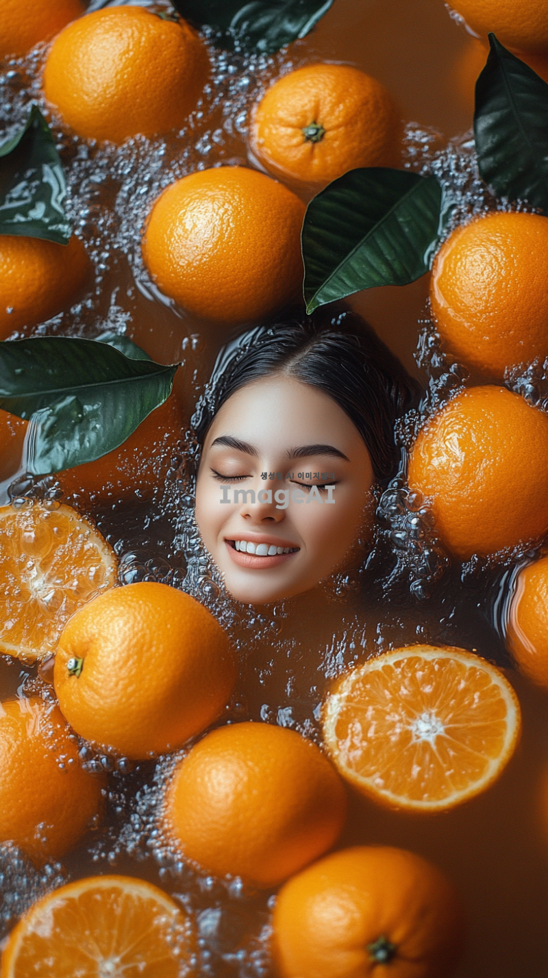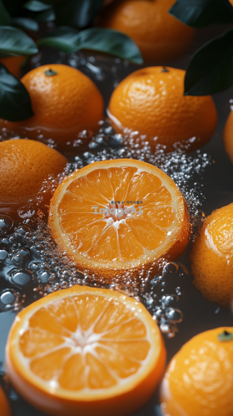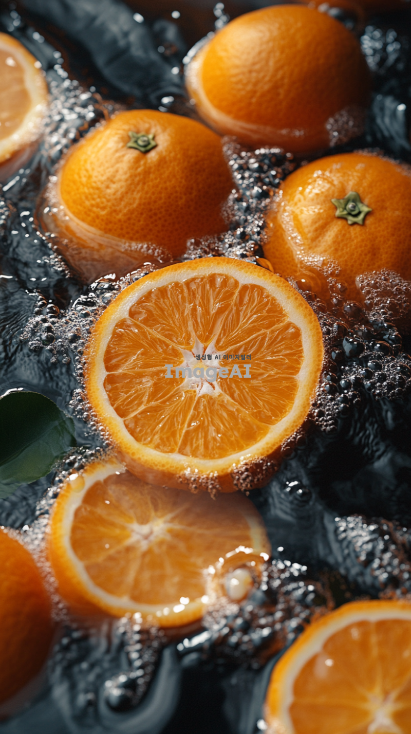 많은 오렌지가 물위에 떠있다