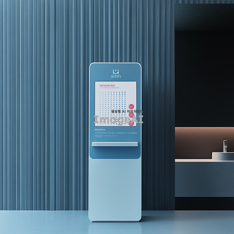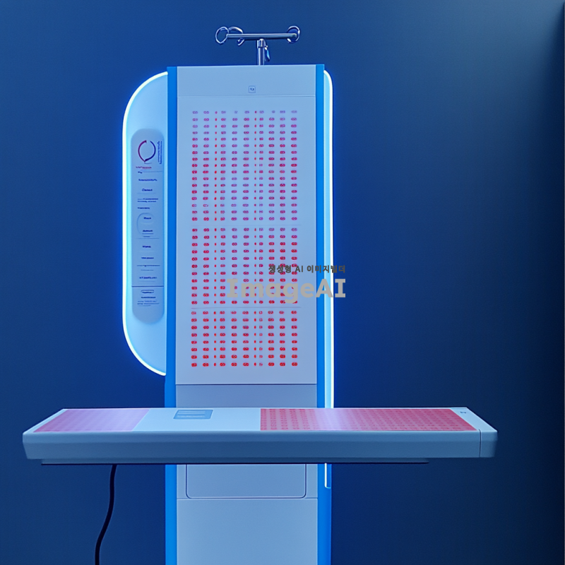 푸른 계열의 색상으로 구성된 신뢰감 있는 의료기기 제품 디자인, 현대적이고 세련된 느낌, 사용자 친화적인 인터페이스, 고급스러운 재질과 마감, 의료 환경에 적합한 안정감 있는 분위기, 조명 효과로 강조된 세부 사항, 깨끗하고 전문적인 이미지.