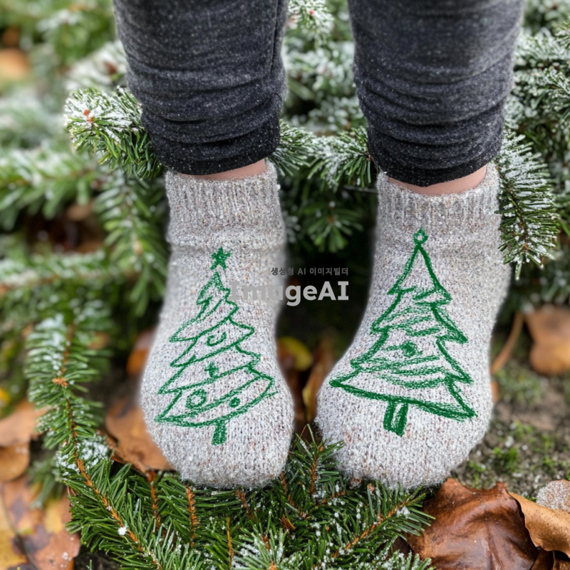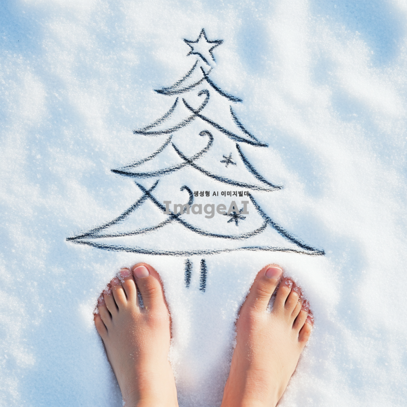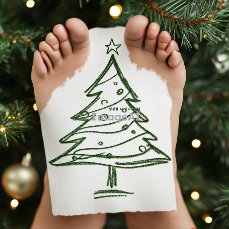 사람이 발로 그린 크리스마스 트리