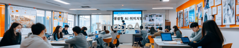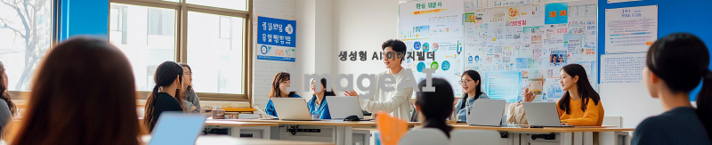 현대적인 마케팅 스쿨의 내부 모습, 다양한 연령대의 한국인 학생들이 열정적으로 수업을 듣고 있는 장면, 강사가 흥미로운 프레젠테이션을 하고 있는 모습, 최신 기술과 자료가 가득한 교실, 학생들이 노트북과 태블릿을 사용하며 활발히 토론하는 분위기, 밝고 창의적인 디자인의 공간, 마케팅 관련 포스터와 자료들이 벽에 걸려 있는 모습.