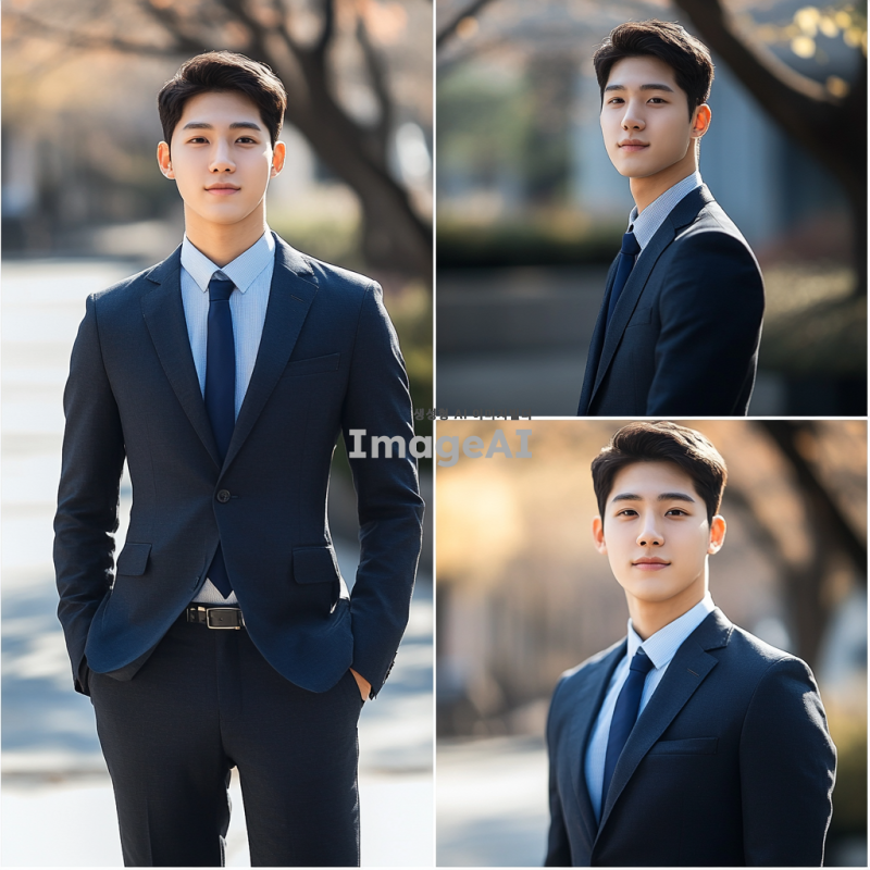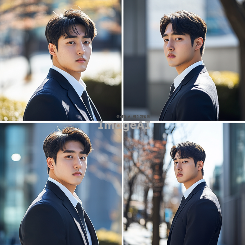 젊은 초선 국회의원이 다양한 포즈로 촬영된 프로필 사진, 현대적인 배경, 자연스러운 표정, 전문적인 이미지, 한국의 국회 건물이나 도시 풍경을 배경으로, 정장 차림, 자신감 넘치는 자세, 다양한 각도에서의 촬영, 밝고 긍정적인 분위기.