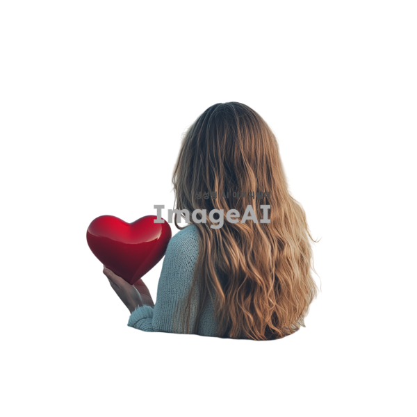 하트를 들고 있는 웨이브 파마 긴 머리 여자의 뒷 모습이 보인다.
