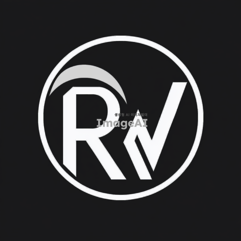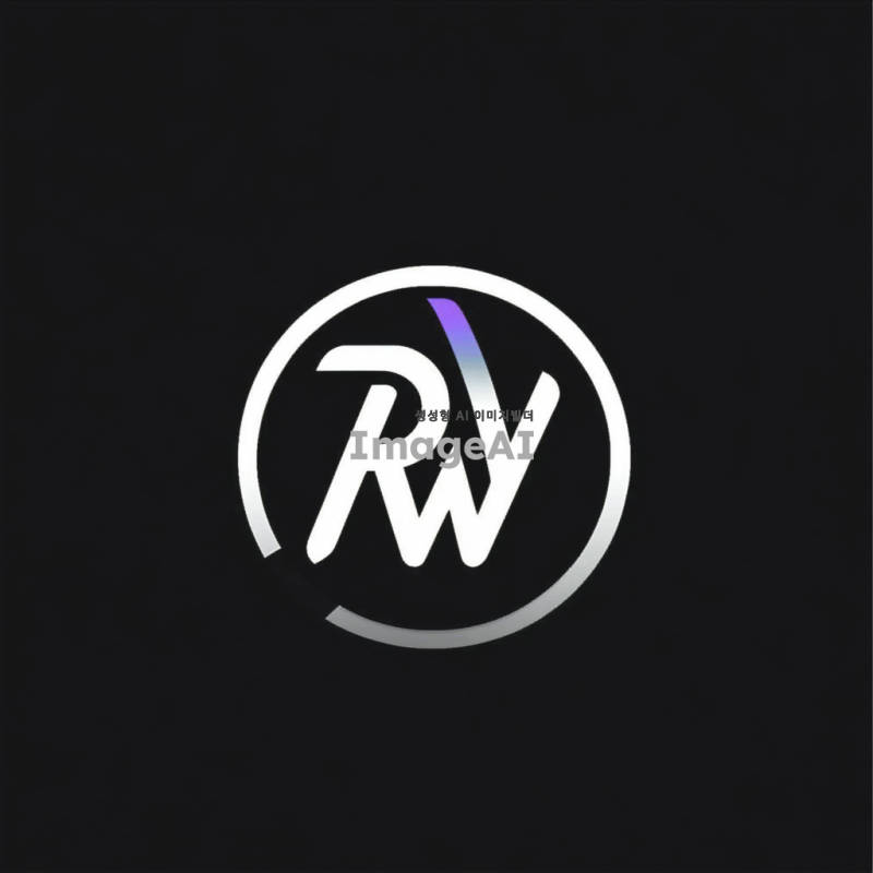 RW를 중심으로 한 현대적이고 세련된 영어 로고 디자인, 간결한 선과 형태로 구성, 블랙과 화이트 색상 조합, 심플하면서도 강렬한 인상을 주는 스타일, 브랜드의 전문성과 신뢰성을 강조하는 디자인, 한국적인 요소를 subtly 포함하여 독특함을 더한 로고.