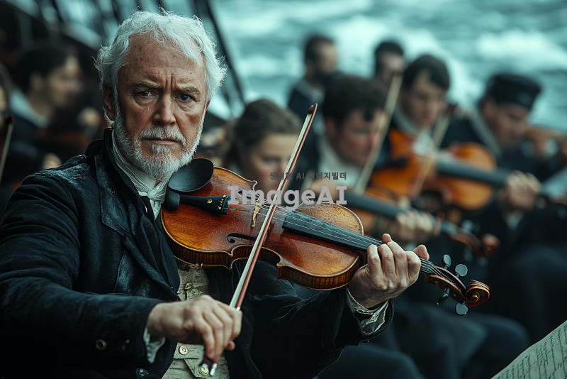 - 감정과 분위기 : 감동적이고 비장한 분위기. 음악가들의 표정과 자세에 집중. 임무에 최선을 다하는 모습, 배경으로는 승객들이 줄지어 구명정에 올라타는 모습