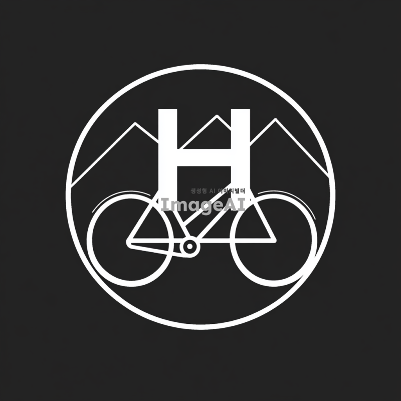 H와 자전거가 조화를 로고를 그려주세요. H는 현대적이고 세련된 디자인으로 표현되며, 자전거는 역동적이고 스포티한 느낌을 주도록 합니다. 배경은 자연 풍경이나 도시의 거리로 설정하여 H와 자전거가 함께하는 활기찬 분위기를 강조해 주세요. 최대한 심플하게