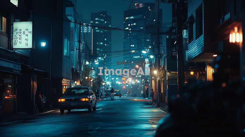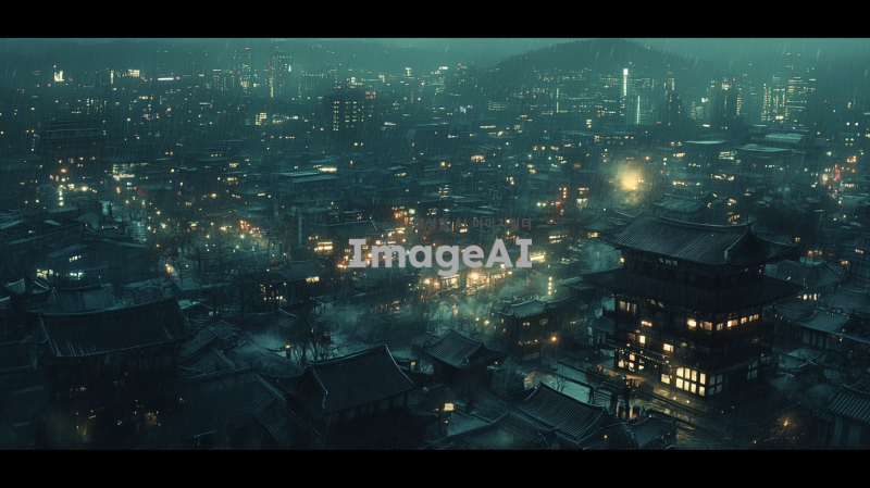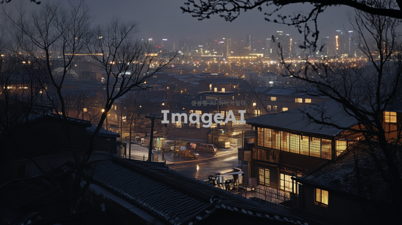 1970년대 중후반부터 현재까지 변화하는 서울의 도시 풍경을 한 장의 이미지로 표현, 밤 시간대의 도심을 배경으로, 현대적인 건물과 거리에서 나오는 은은한 빛이 강조되도록 구성. 각 시대별 특징이 자연스럽게 연결되도록 하며, 한옥은 보이지 않도록 하고 현대적인 서울의 모습을 부각. 빛은 선명하게 표현되어 흐릿하지 않도록 하여 도시의 생동감을 전달.