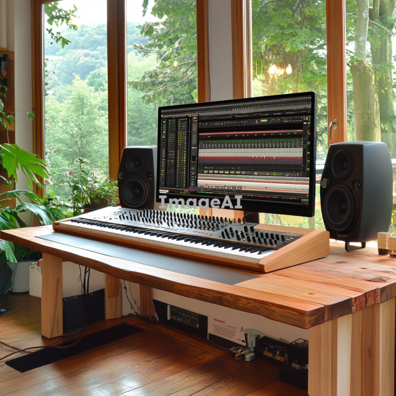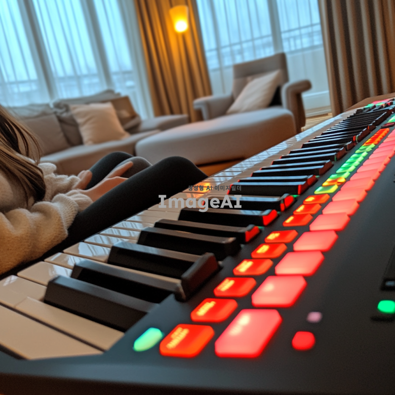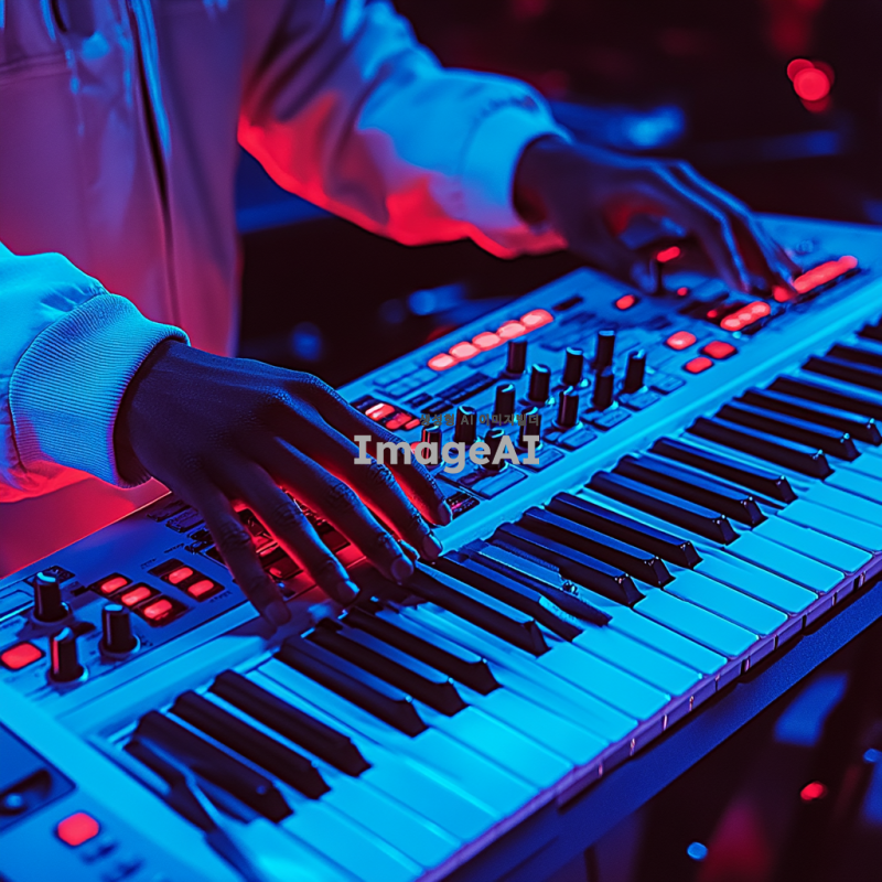 마스터키보드와 함께 현대적인 미디작업을 하는 AI