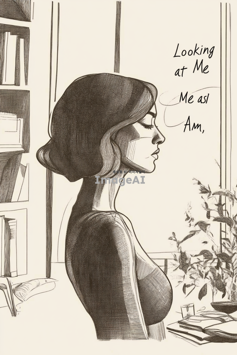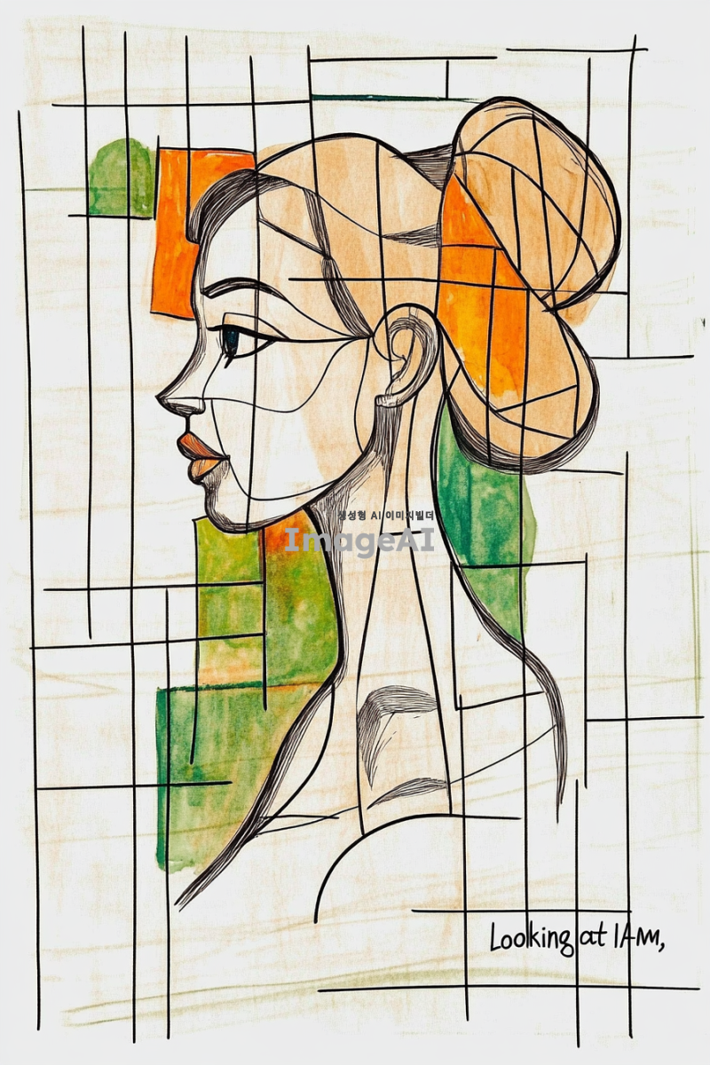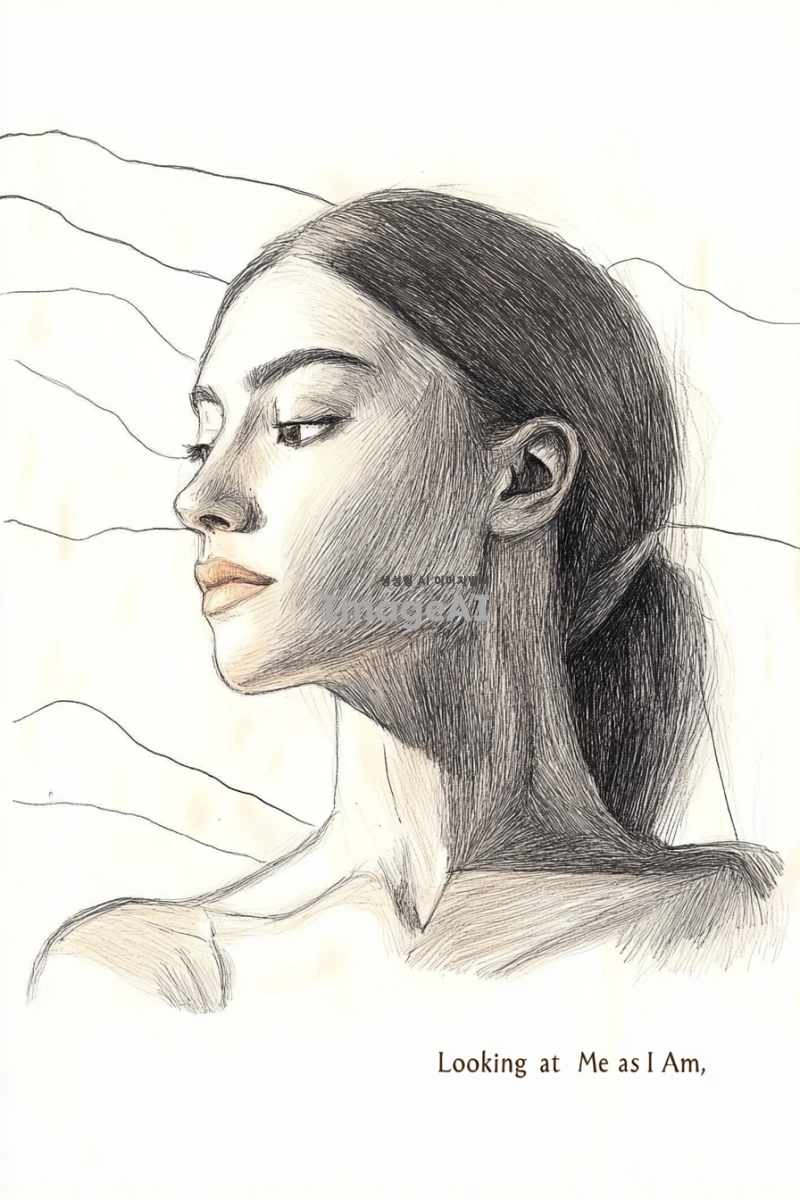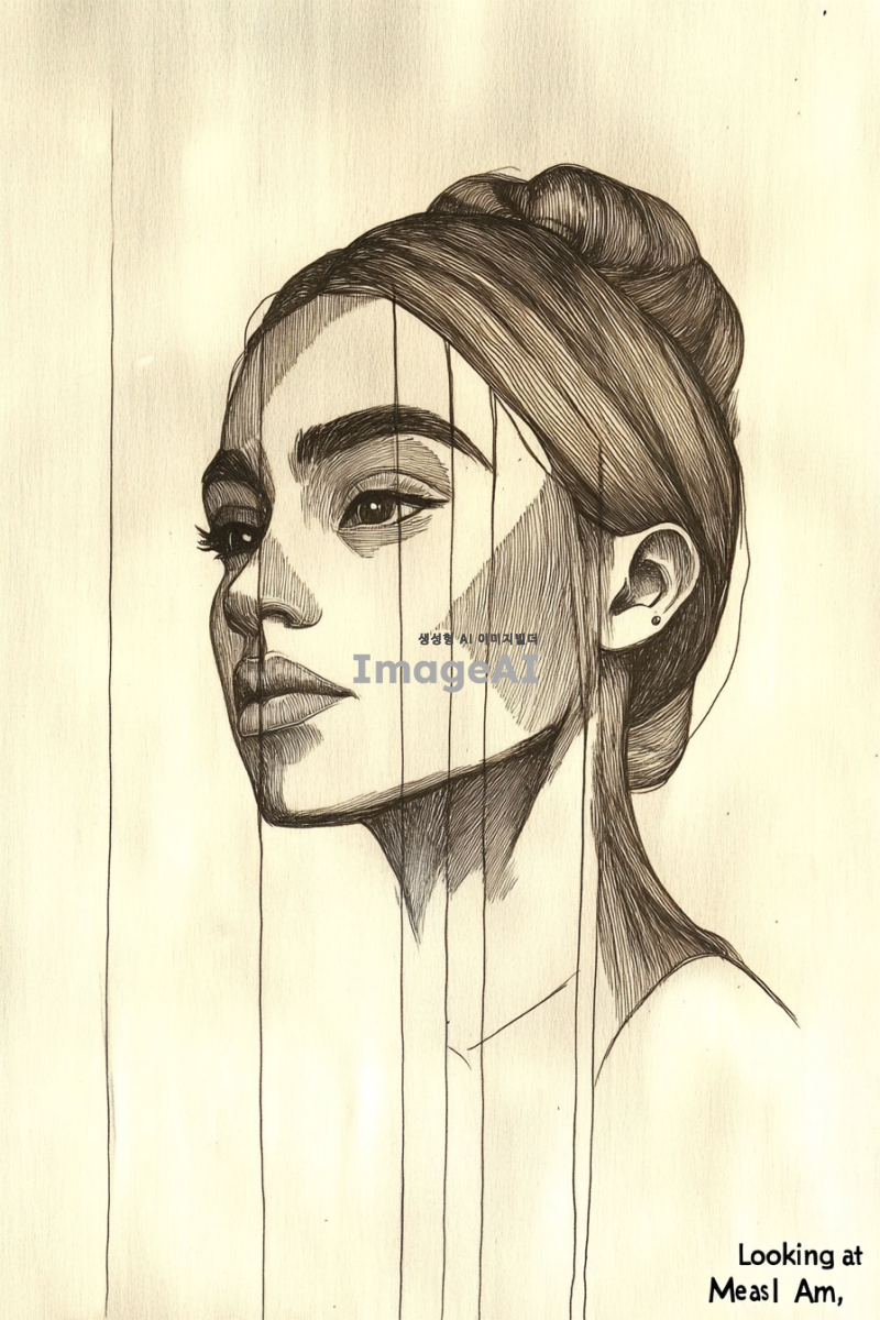책 표지에 들어갈 그림, 제목은 있는 그대로 나를 바라보기, 분야는 에세이, 사색하는 여성, contour drawing