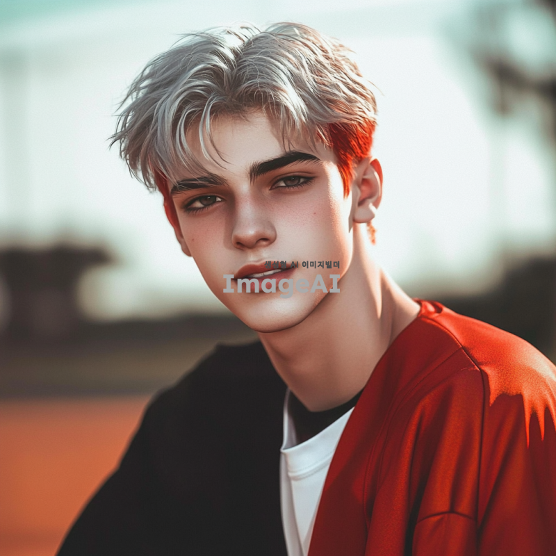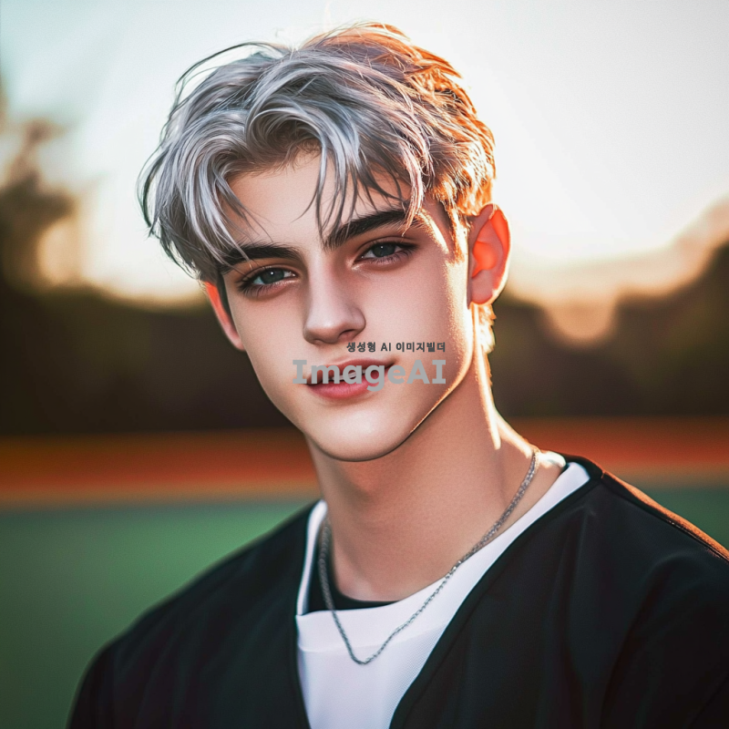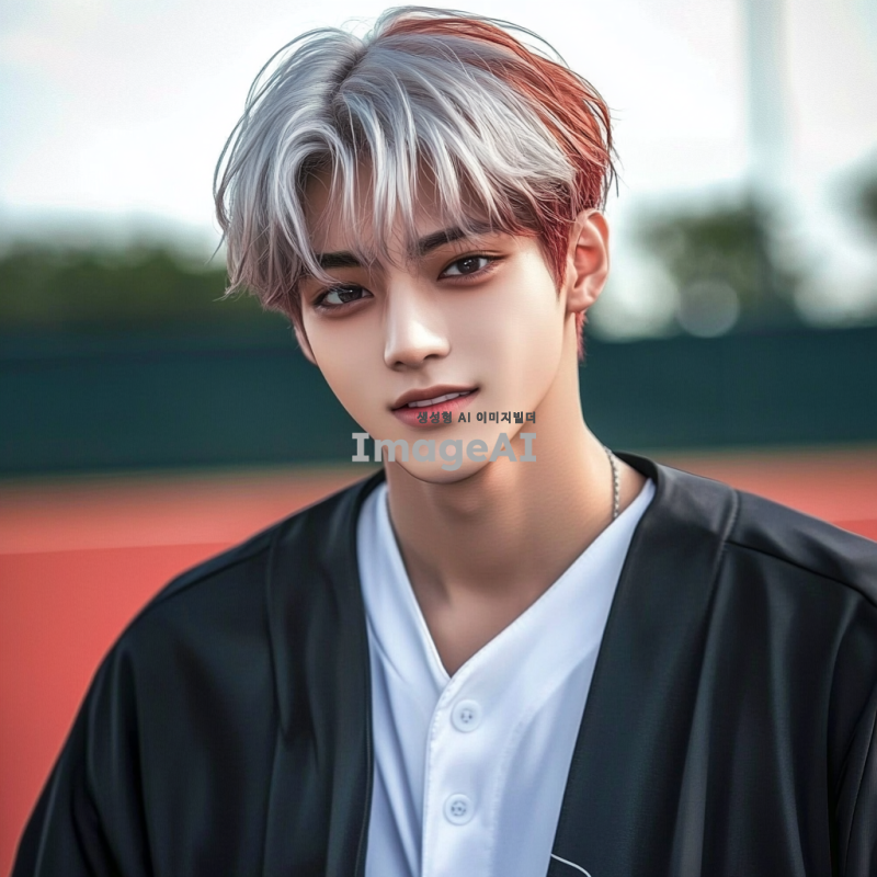 개인 소장. 야구부 유니폼을 입고 있는 잘생긴 고등학생. 머리는 은발
