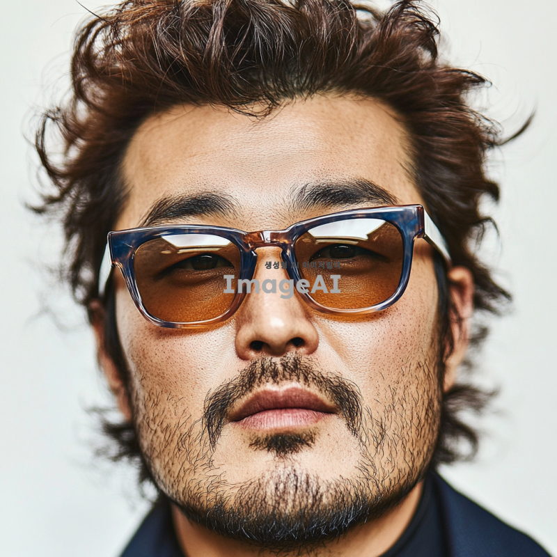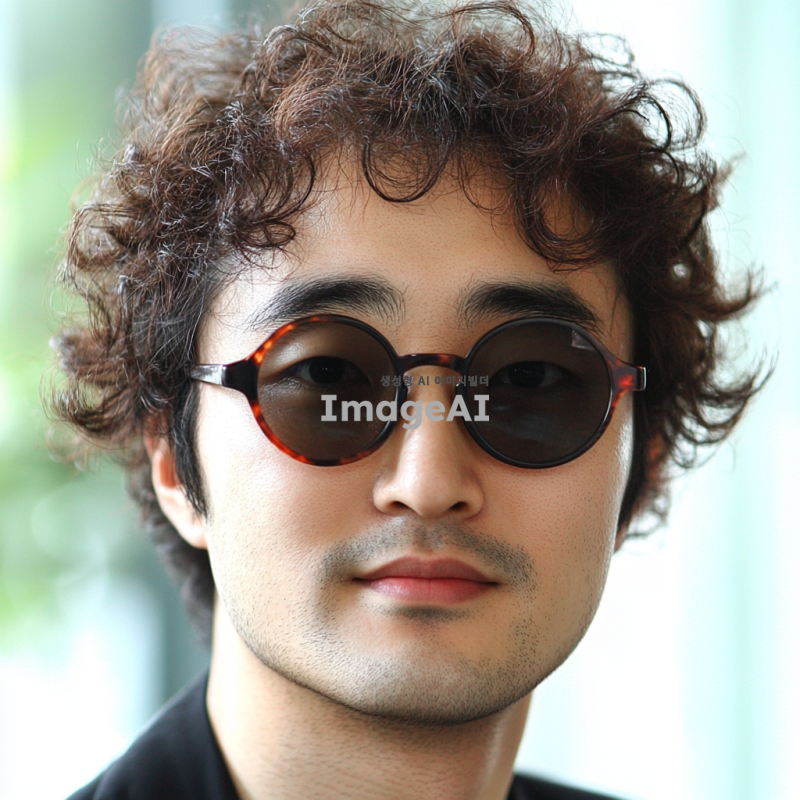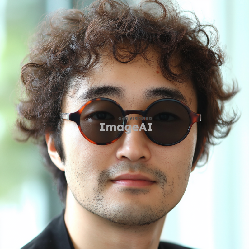 29살의 한국 남성, 갸름한 마름고꼴 얼굴, 황토색 피부, 가르마 펌 헤어스타일, 회사원 이미지에 어울리는 선글라스 착용, 1:1 비율, 600x600px, jpg 형식.