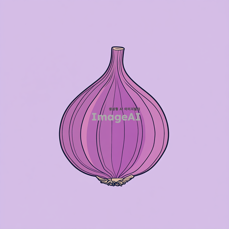 깨끗하고 매끈한 보라색 양파의 단면을 그린 이미지. 양파는 동그란 형태로, 프로필 사진에 적합하게 디자인되어 있으며, 이목을 끌 수 있는 색감과 질감을 강조. 배경은 심플하고 깔끔하게 처리하여 양파가 돋보이도록 구성.