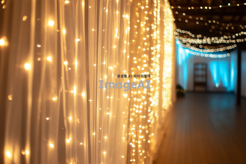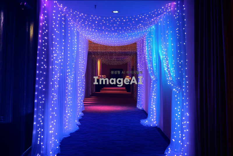 웨딩홀에서 led 전광판에 쓰일 커텐형태를 띈 조명 사진