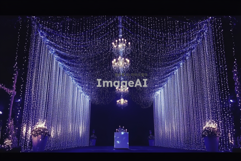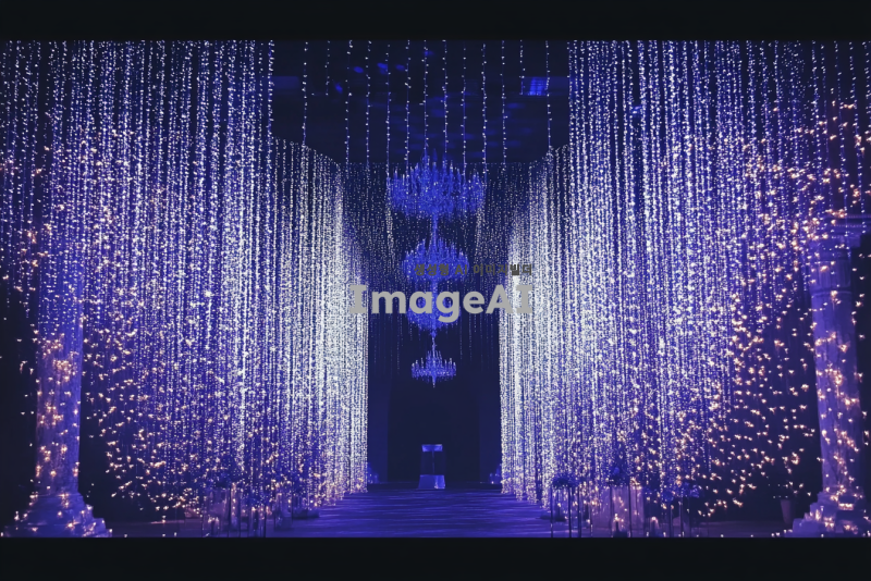웨딩홀 무대 전광판에서 쓰일 조명으로 만들어진 평면 커텐이미지