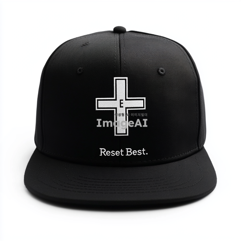 검정색 뉴에라 모자에 어울리는 디자인으로, "Reset"과 "Best"라는 글자가 포함된 로고를 제작합니다. 로고의 중심에는 간결하고 현대적인 스타일의 십자가 이미지가 배치되어 있으며, 전체적인 색상은 흰색과 회색을 사용하여 대비를 강조합니다. 글자는 세련되고 읽기 쉬운 폰트를 사용하며, 모자와 조화를 이루도록 디자인합니다.