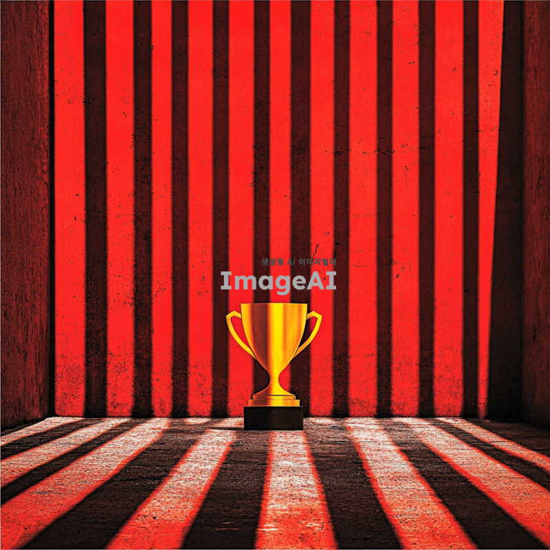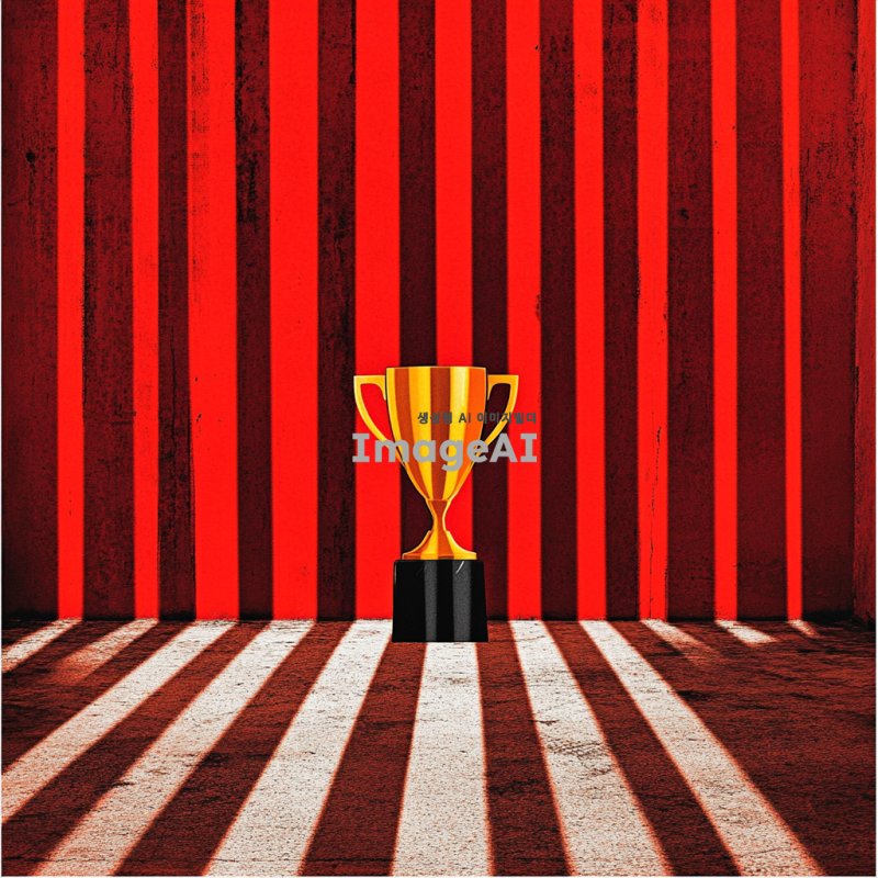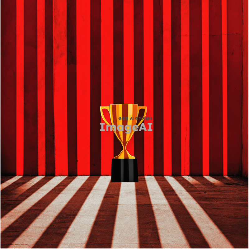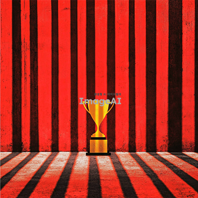 2024년 연말 시상식의 화려한 분위기를 담은 이미지. 트로피 모양이 정중앙에 있고 붉은 배경에 노란색 트로피가 있음