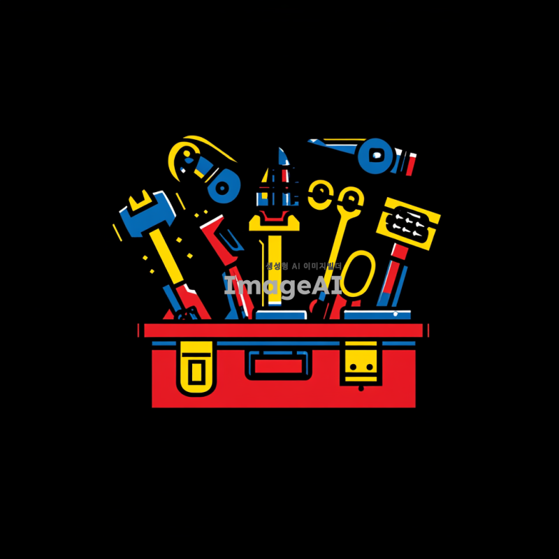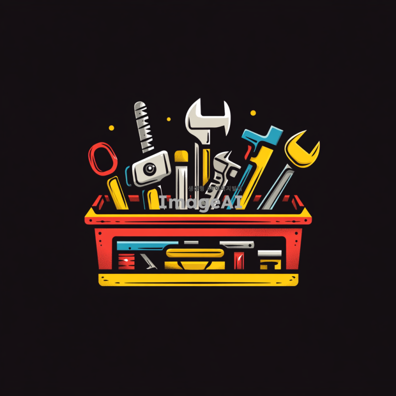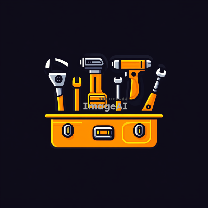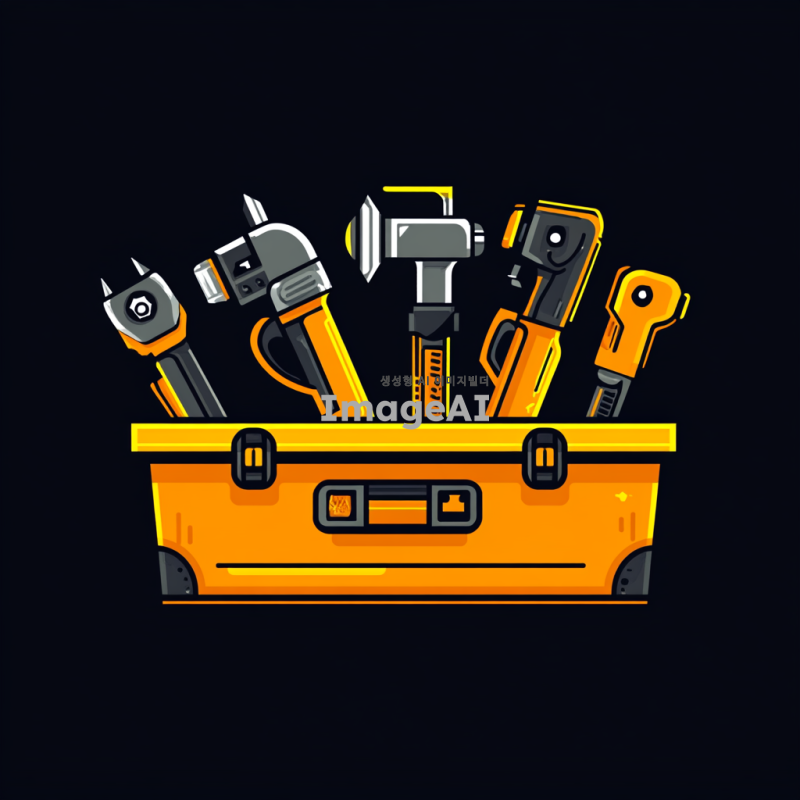 전동공구 회사의 로고 디자인을 위한 툴박스 이미지, 현대적이고 세련된 스타일, 다양한 전동공구가 포함된 툴박스, 강렬한 색상 조합, 한국적인 요소를 가미한 디자인, 실용적이고 전문적인 느낌을 주는 구성.