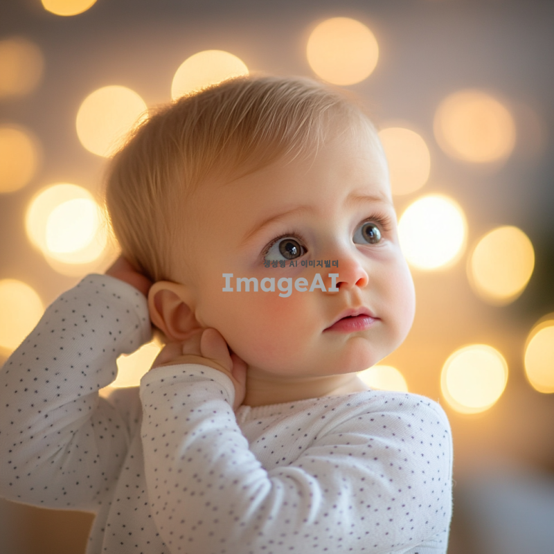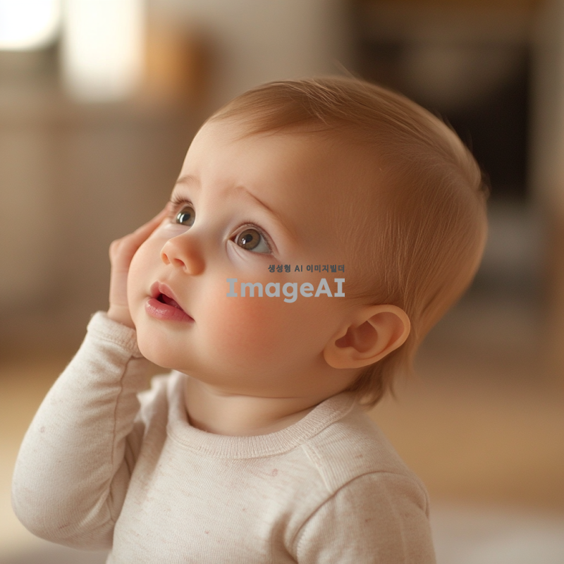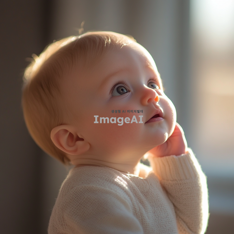 아기가 목 중심을 잡고 자유롭게 움직이는 모습, 알렉산더 테크닉 이론을 적용하여 자연스럽고 편안한 자세로 목을 자유롭게 움직이는 장면, 부드러운 조명 아래 아기의 표정은 호기심과 편안함을 드러내며, 배경은 아늑한 실내 공간으로 설정, 아기의 움직임이 생동감 있게 표현된 이미지