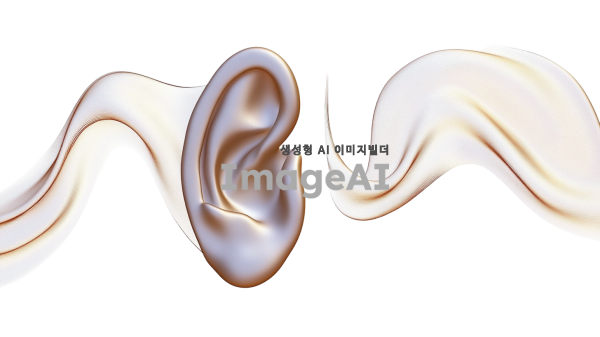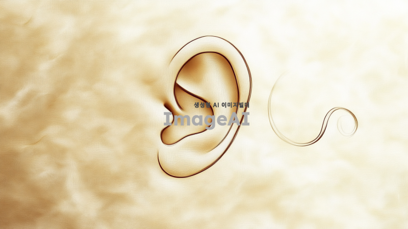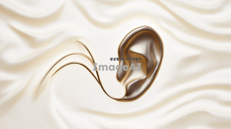 고급스러운 느낌의 일러스트 스타일로, 한쪽 귀를 섬세하게 묘사한 이미지. 귀의 형태와 디테일을 강조하고, 빛과 그림자를 활용하여 입체감을 더해주며, 배경은 부드러운 색조로 처리하여 귀가 돋보이도록 구성. 귀의 질감은 부드럽고 윤기 나는 느낌으로, 고급스러운 장신구가 살짝 장식된 모습.