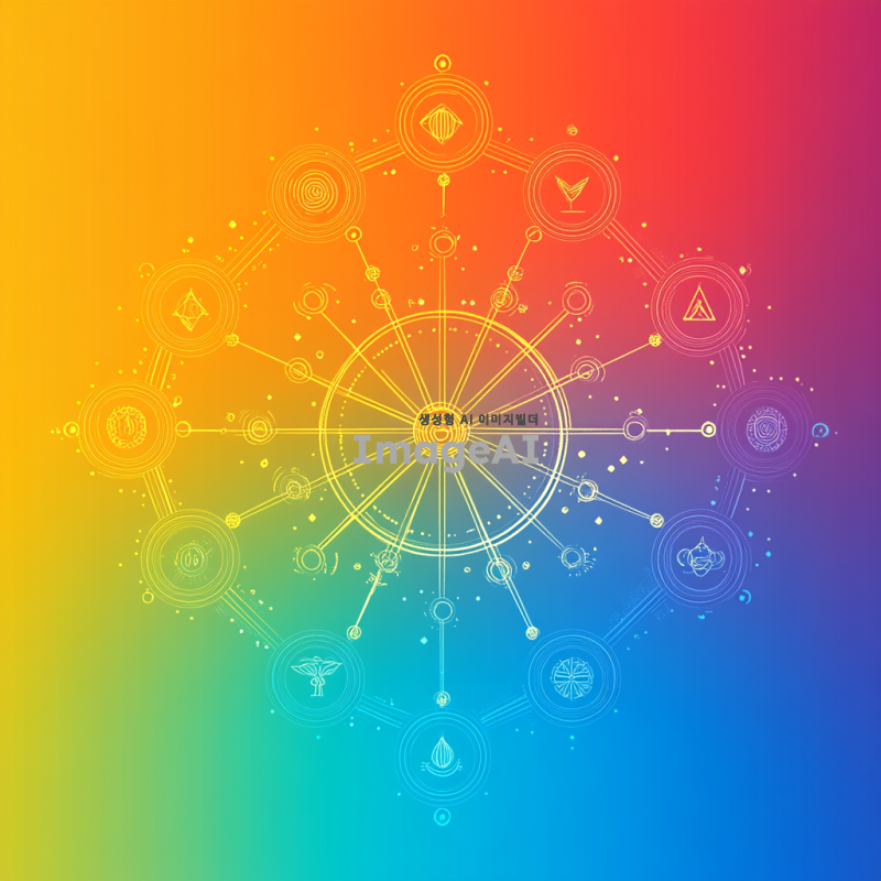 에니어그램의 다양한 성격 유형을 상징하는 아홉 개의 원이 서로 연결된 형태로 디자인된 표지, 각 원 안에는 각 성격 유형을 나타내는 심볼과 색상이 조화롭게 배치되어 있으며, 배경은 부드러운 그라데이션으로 이루어져 있어 시각적으로 편안한 느낌을 주고, 제목은 세련된 서체로 중앙에 배치되어 있어 독자의 시선을 끌 수 있도록 구성된 이미지.
