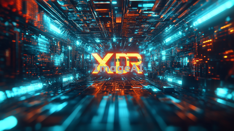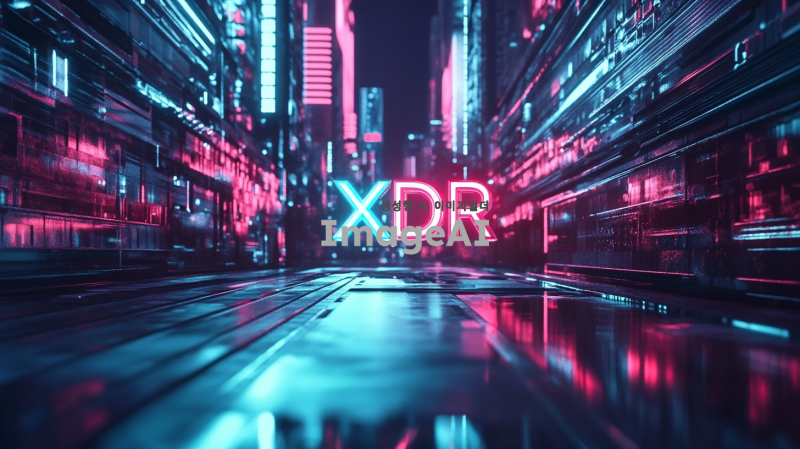 XDR이라는 단어를 중심으로 한 미래적인 느낌의 배경, 빛나는 효과와 함께 XDR 글자가 강조된 이미지