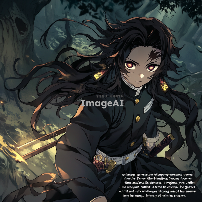 귀멸의 칼날의 히메즈마 교메이를 주제로 한 이미지 생성 프롬프트: