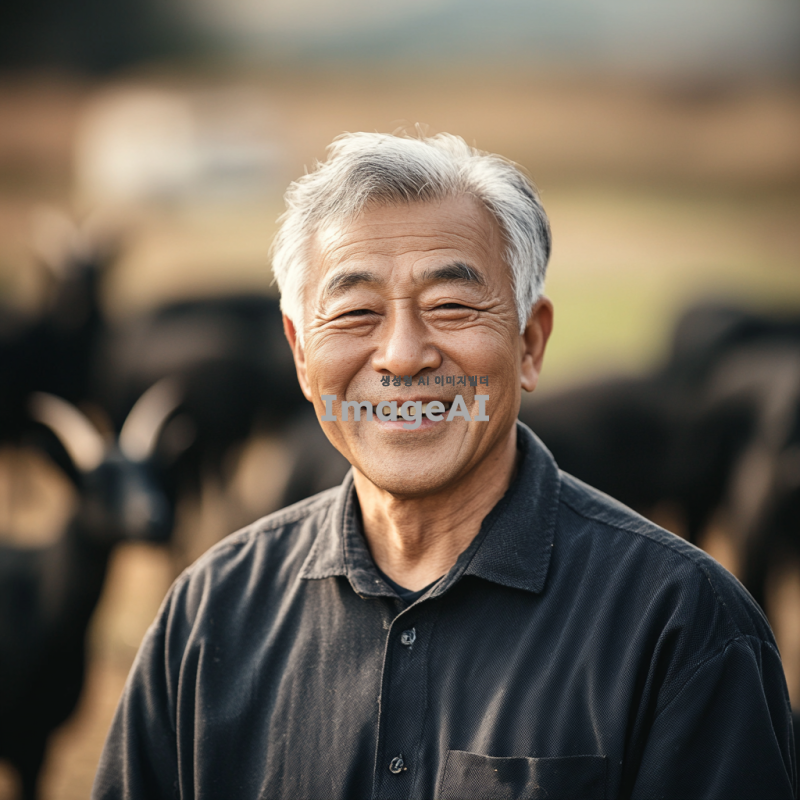 ai 이미지는 신뢰성을 주기 위해 배경은 흑염소 농장 같은곳에서 60~70대 정도의 남자가 인자하게 웃는 느낌으로 만들고 싶어