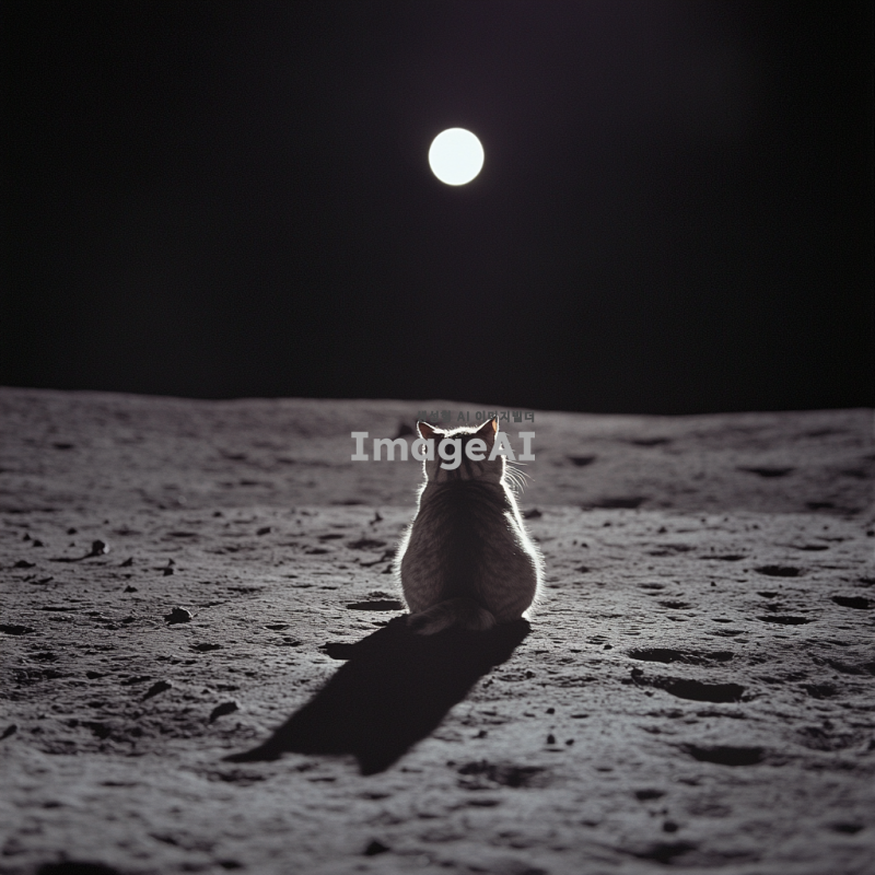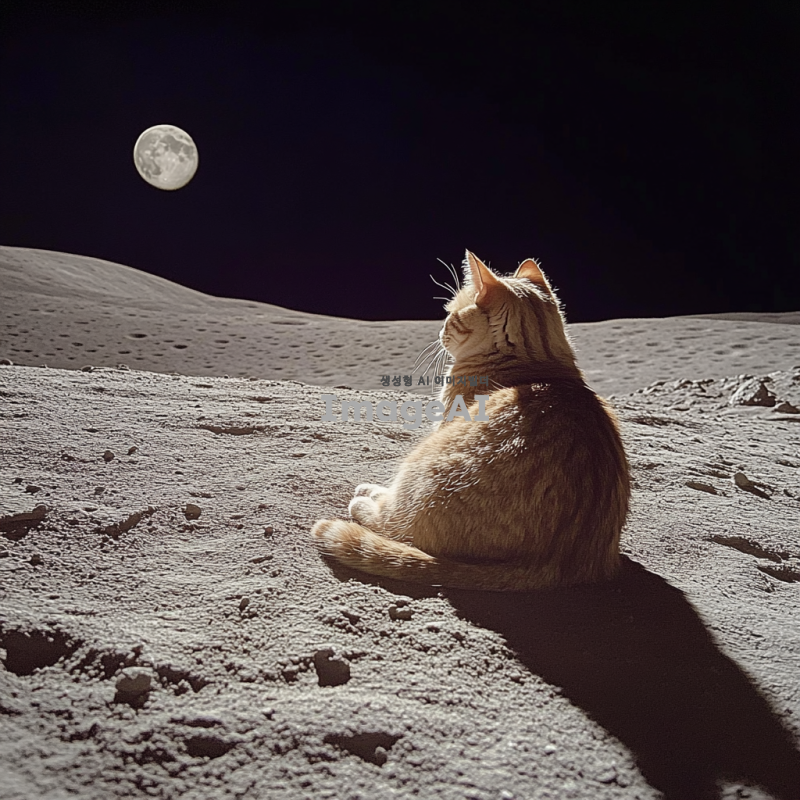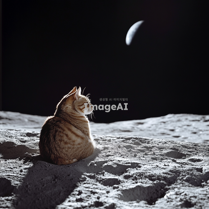 달 표면 위에 앉아 쉬는 이미지.