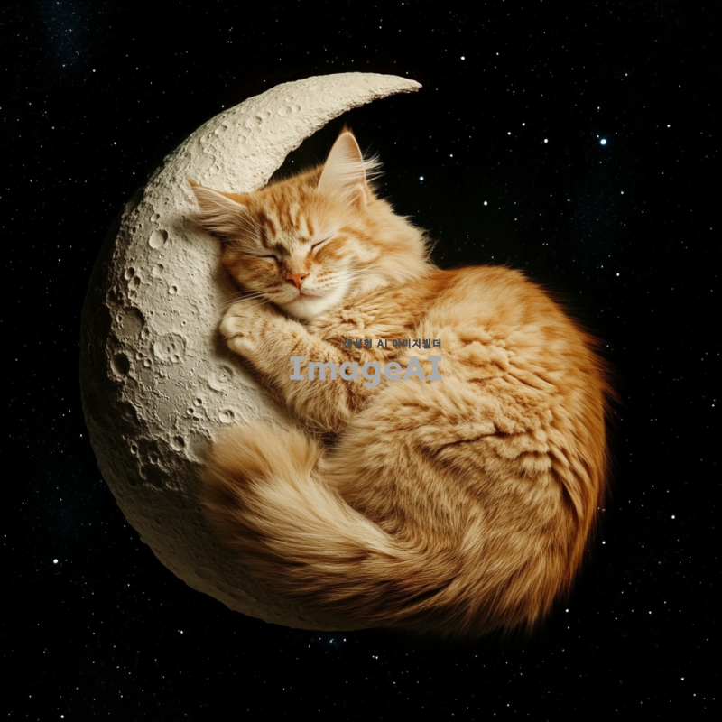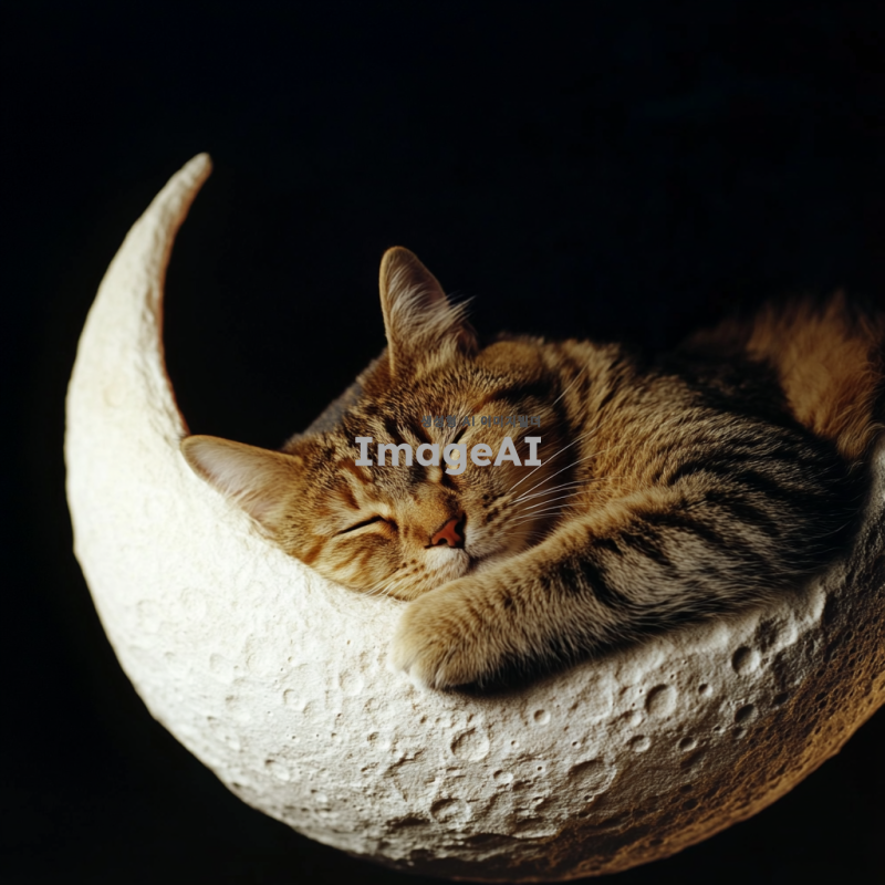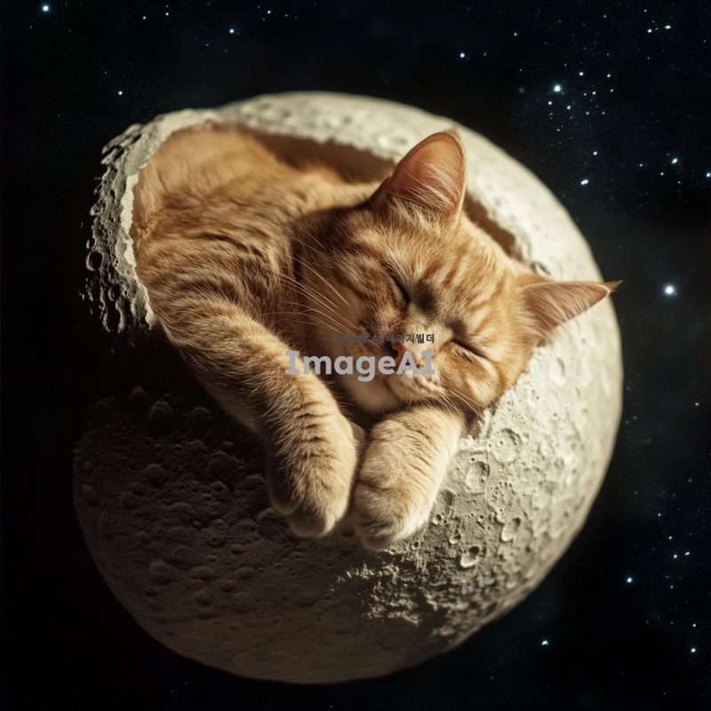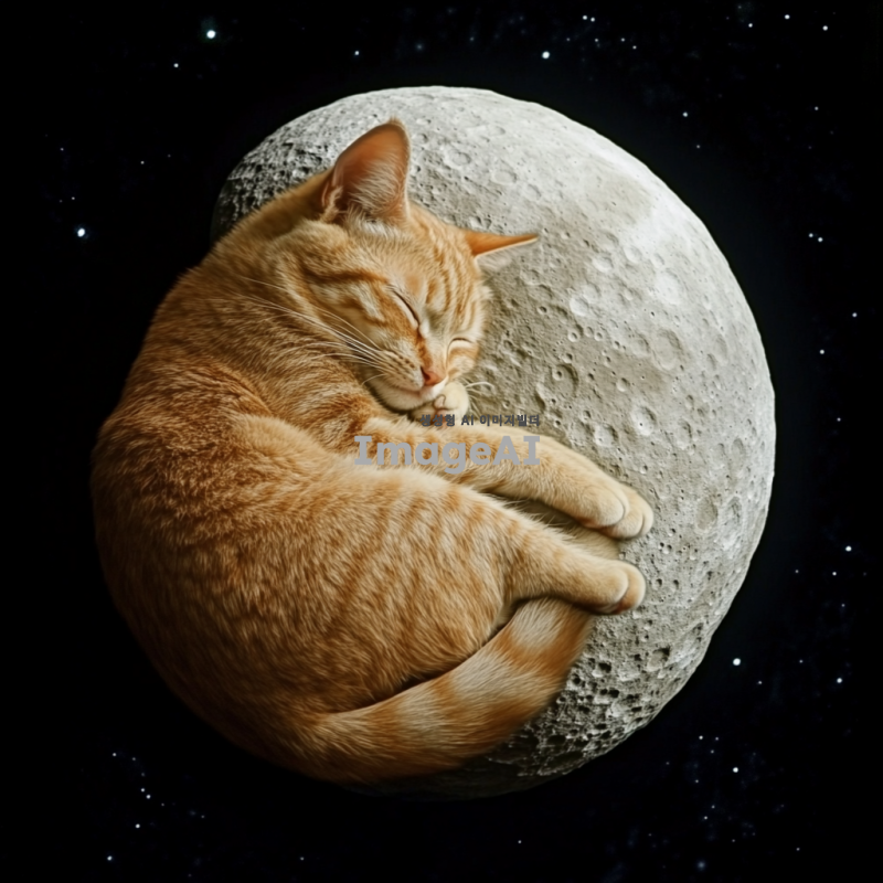 달 위에서 자고 있는 고양이의 사진.