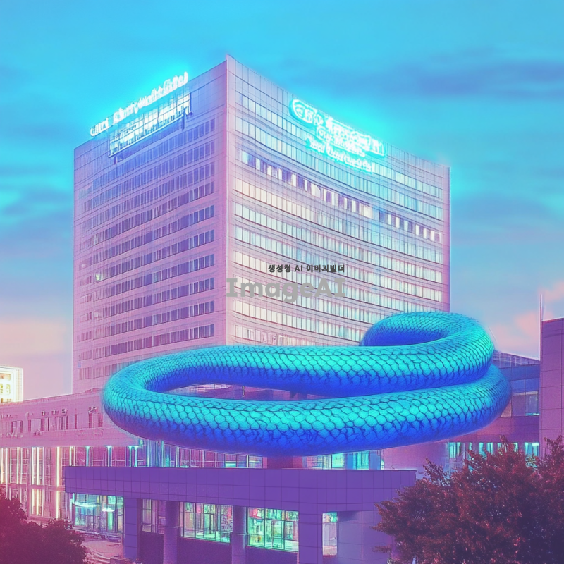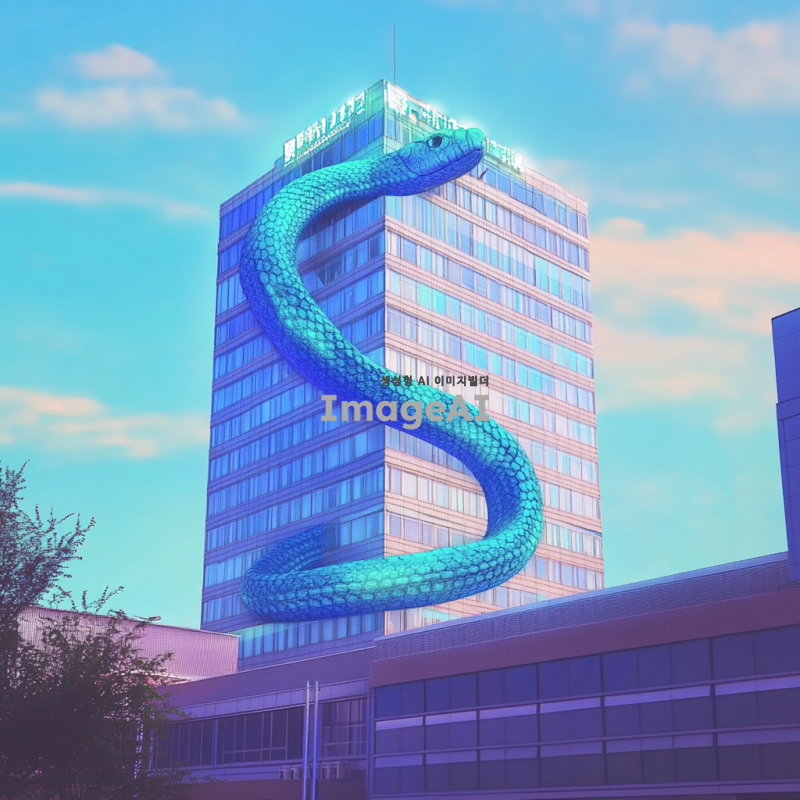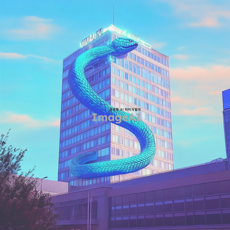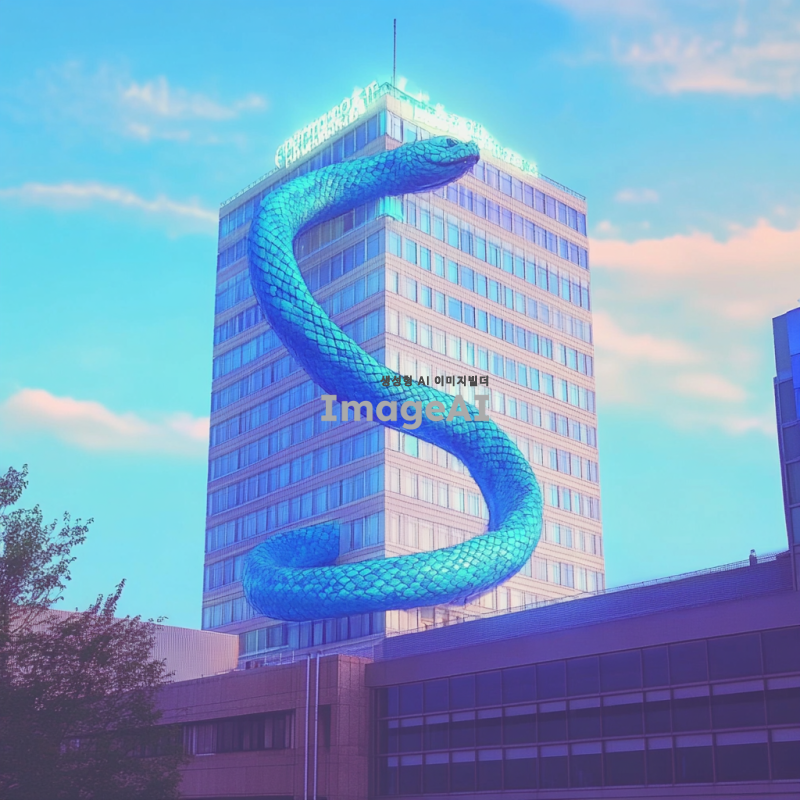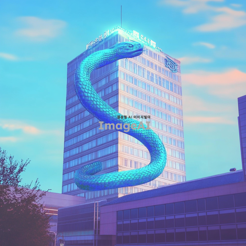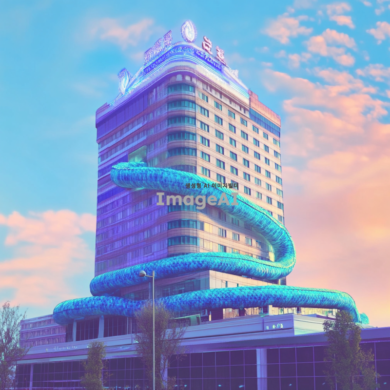 푸른뱀이 건물 전체를 휘감고 있고 상서로운 기운을 주변에 발산