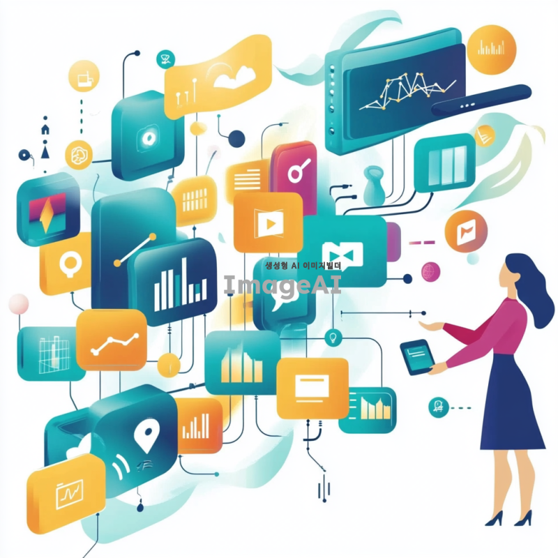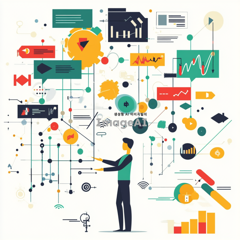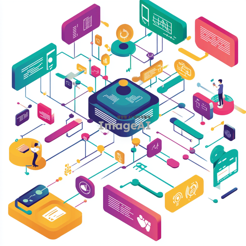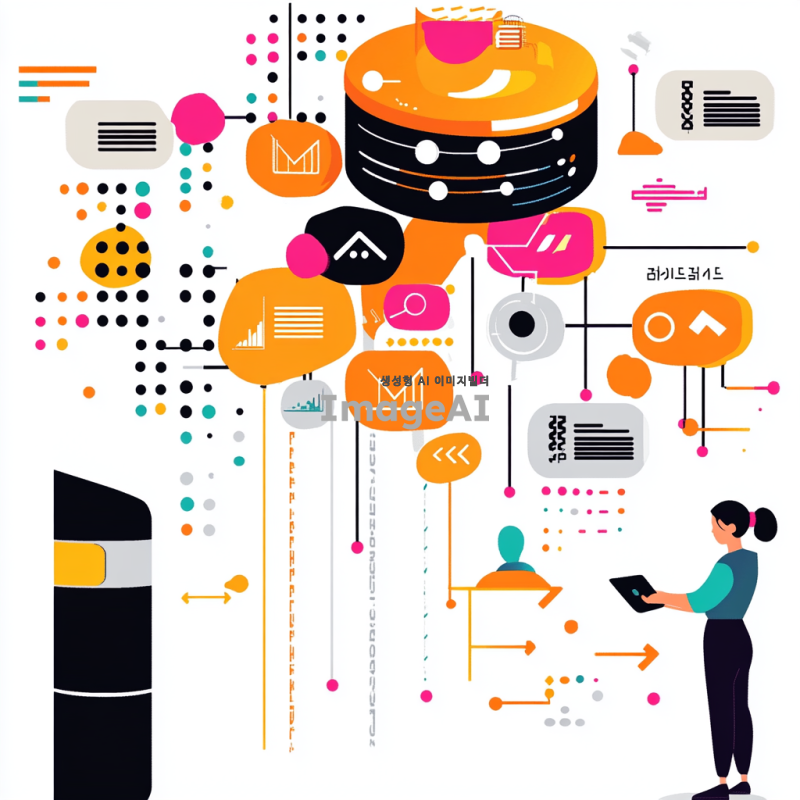 멀티모달 데이터를 학습하고 있는 LLM 모델을 시각적으로 표현한 이미지. 다양한 데이터 유형(텍스트, 이미지, 음성 등)을 처리하는 인공지능 모델을 상징적으로 나타내며, 데이터 흐름을 나타내는 화살표와 함께 다채로운 색상의 데이터 아이콘들이 주위를 둘러싸고 있는 모습. 배경은 현대적인 기술 느낌을 주는 추상적인 디자인으로, 한국인 연구자가 모델을 조작하고 있는 장면을 포함.